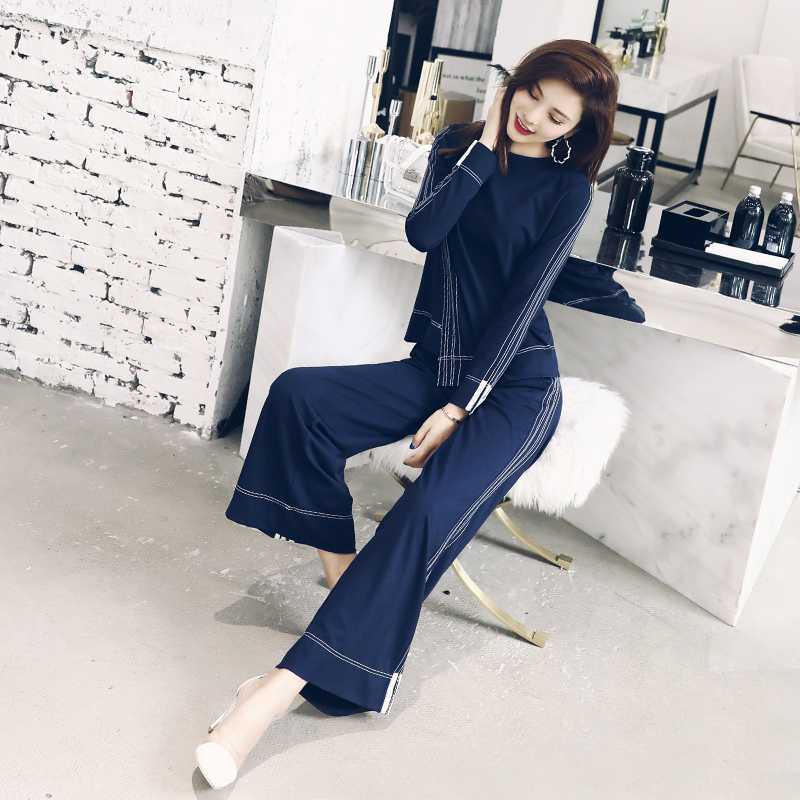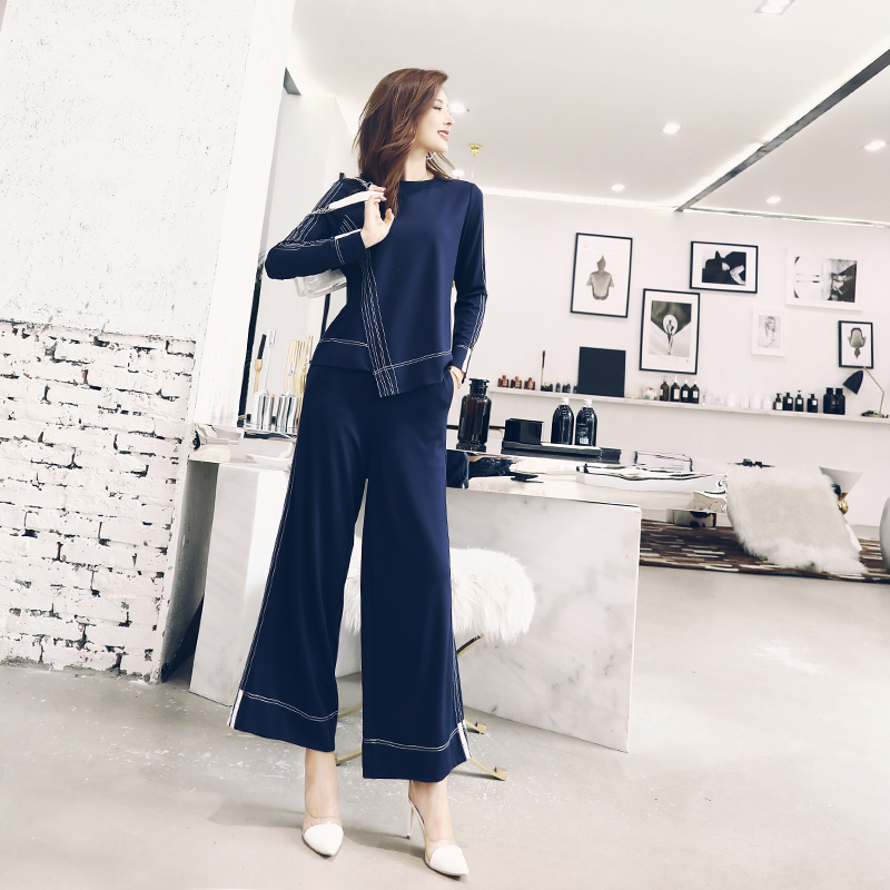 女神范休閑套裝女秋2018新款時尚名媛氣質網紅闊腿褲兩件套