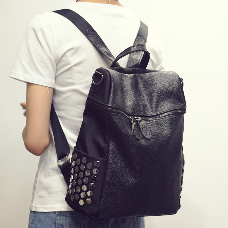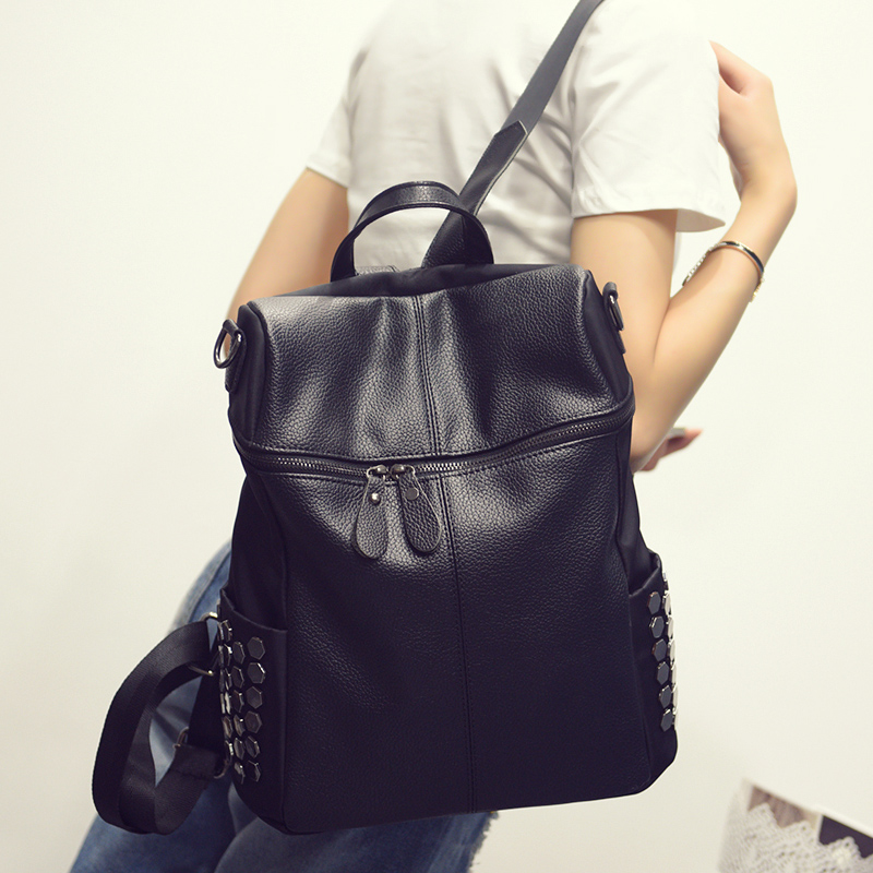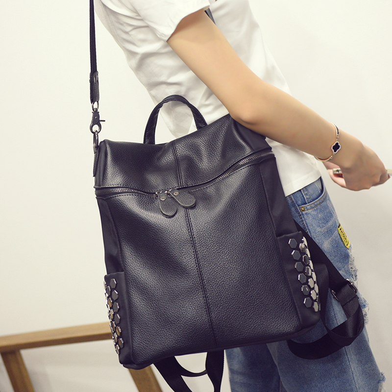 新款鉚釘雙肩包女包韓版多用休閑旅行背包學院風學生書包潮包