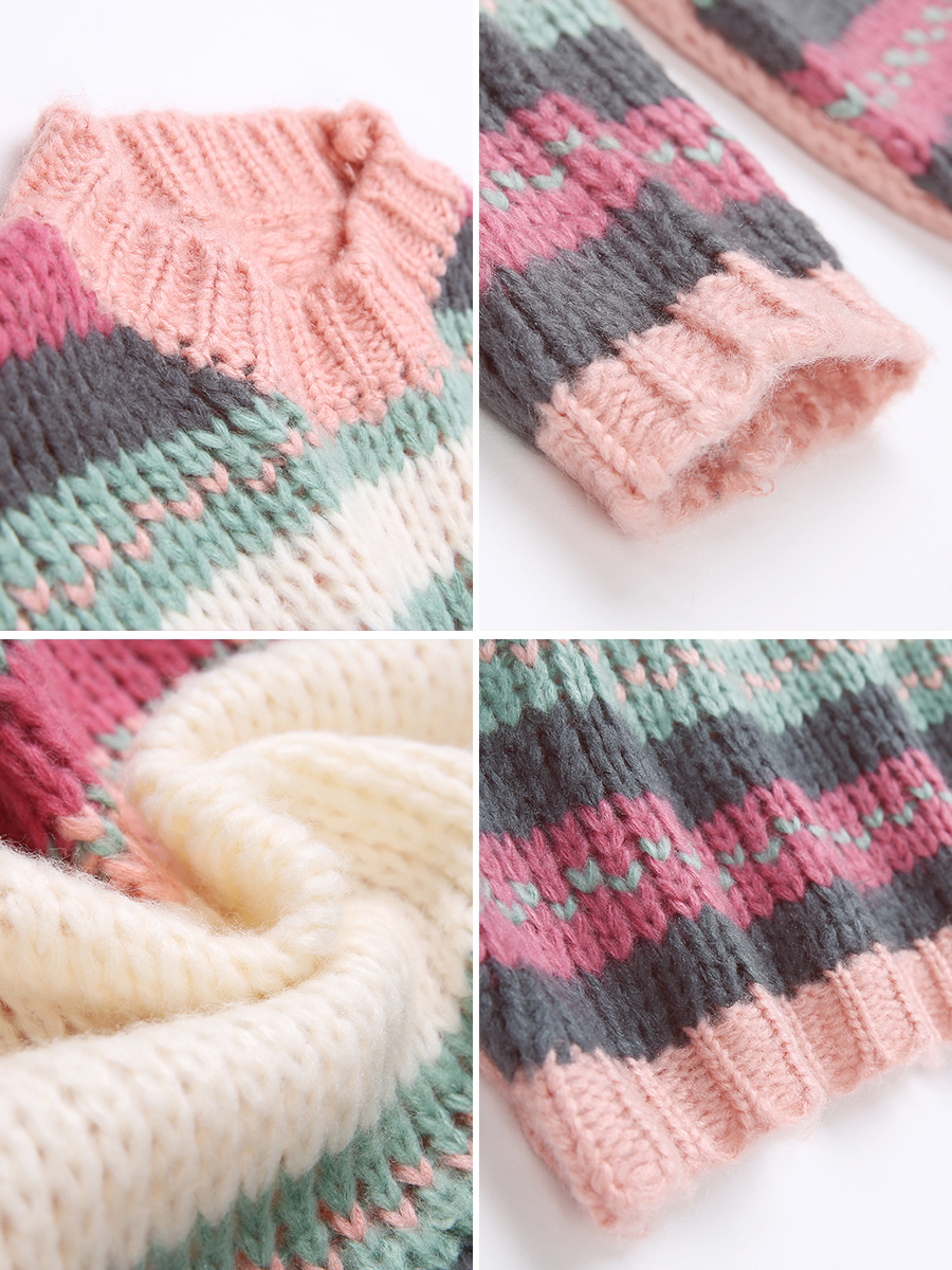 MG小象冬季慵懶風毛衣女套頭長袖2018新款寬松條紋拼色原宿風上衣