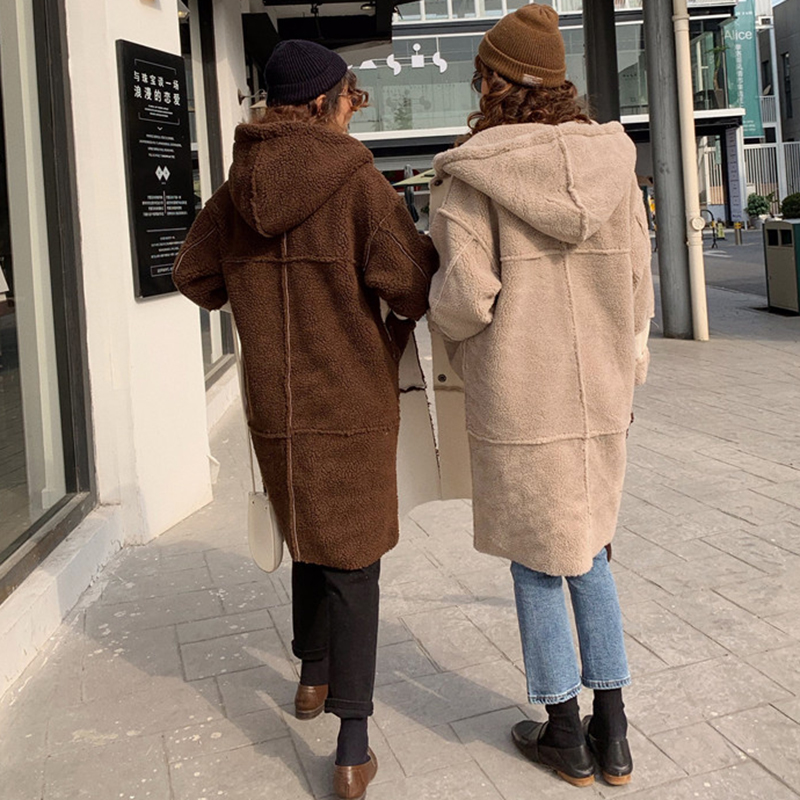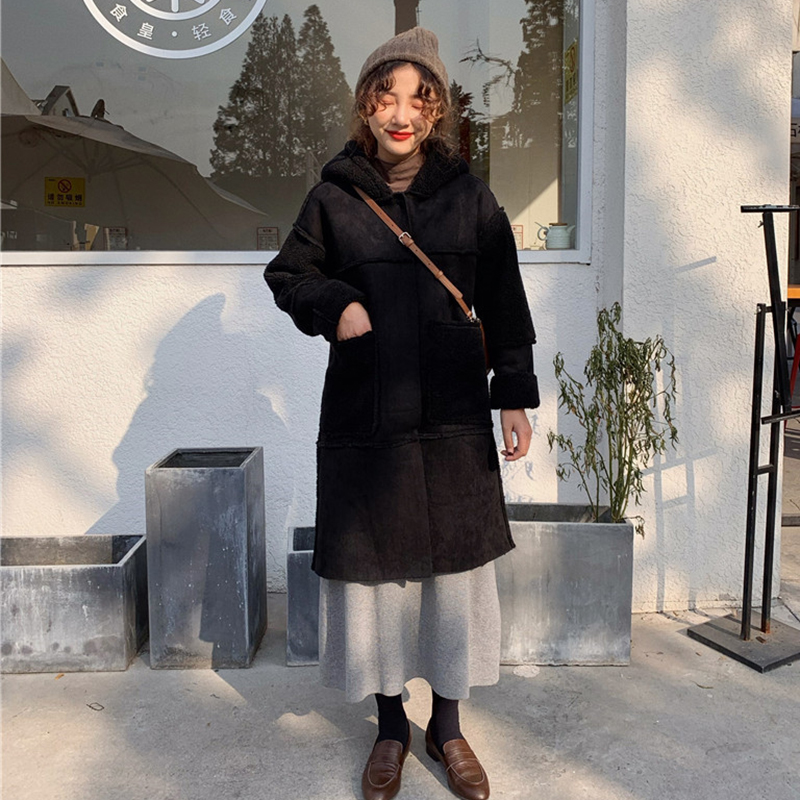 秋冬女裝2018新款韓版中長款羊羔毛拼接皮毛一體寬松加絨連帽外套