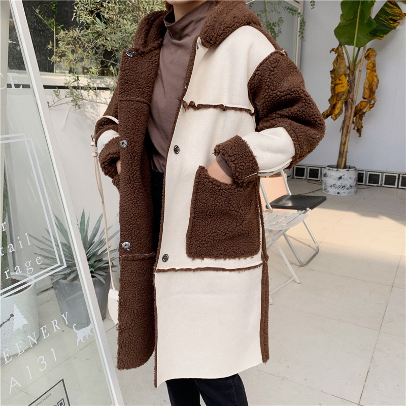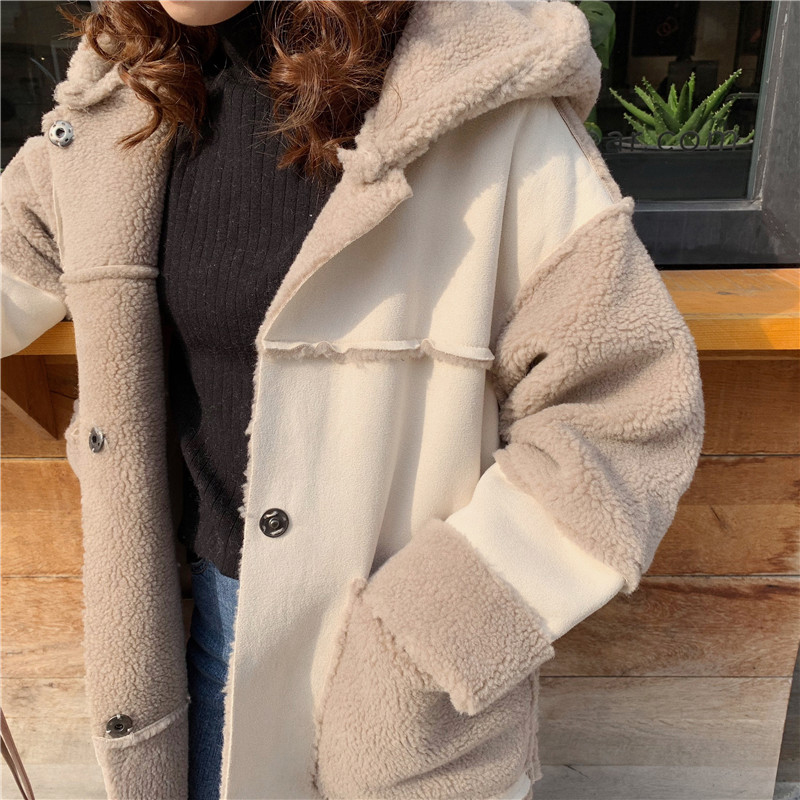/ 秋冬女裝2018新款韓版中長款羊羔毛拼接皮毛一體寬松加絨連帽外套