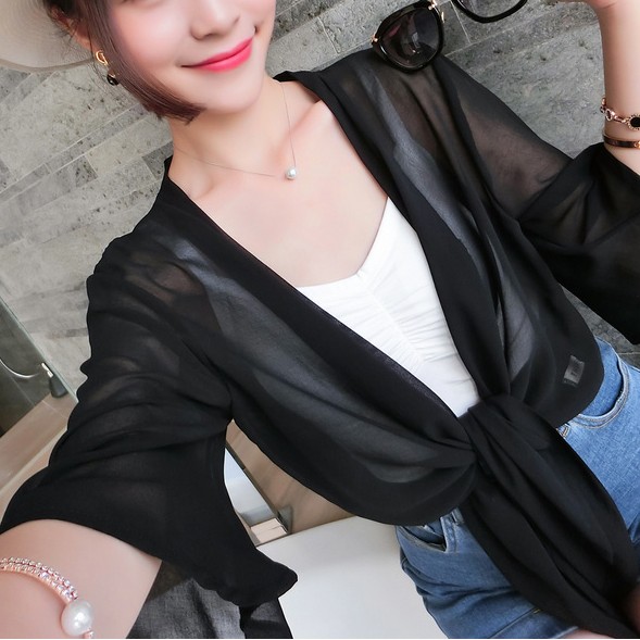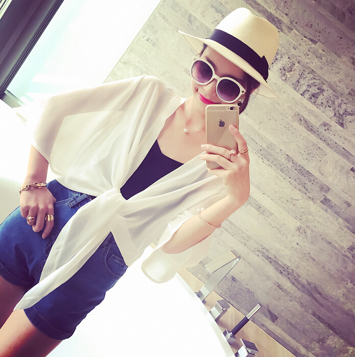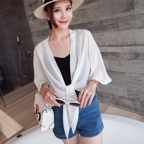 短裝防曬薄外套女白色坎肩夏2017內搭外搭開衫薄雪紡小款披肩學生