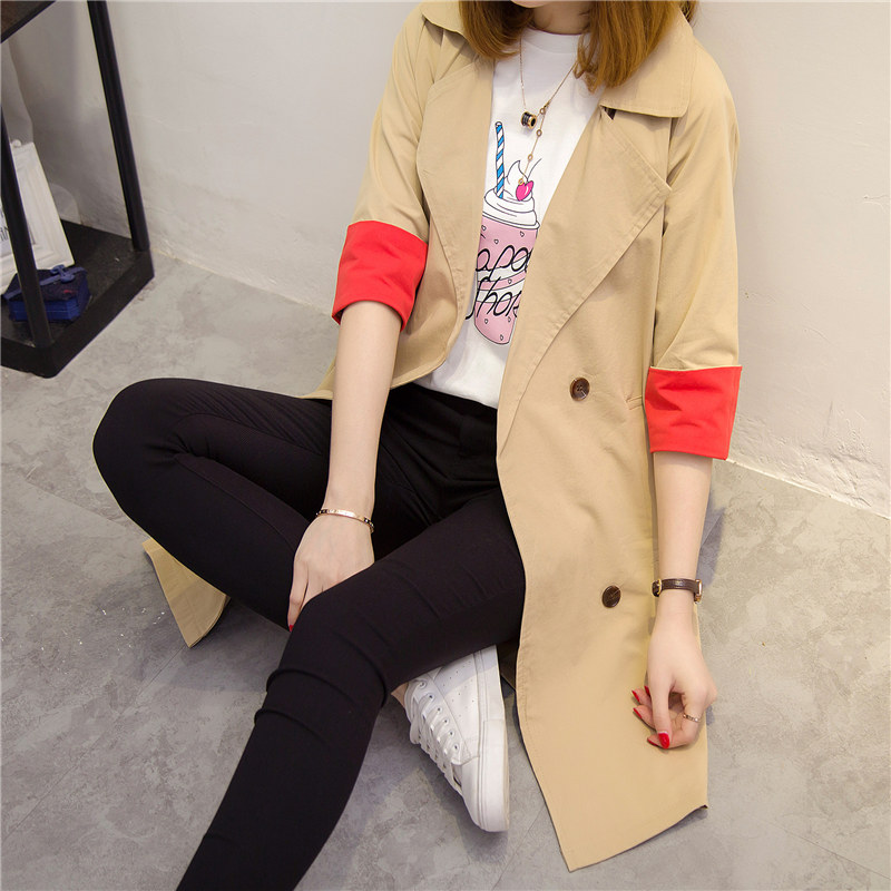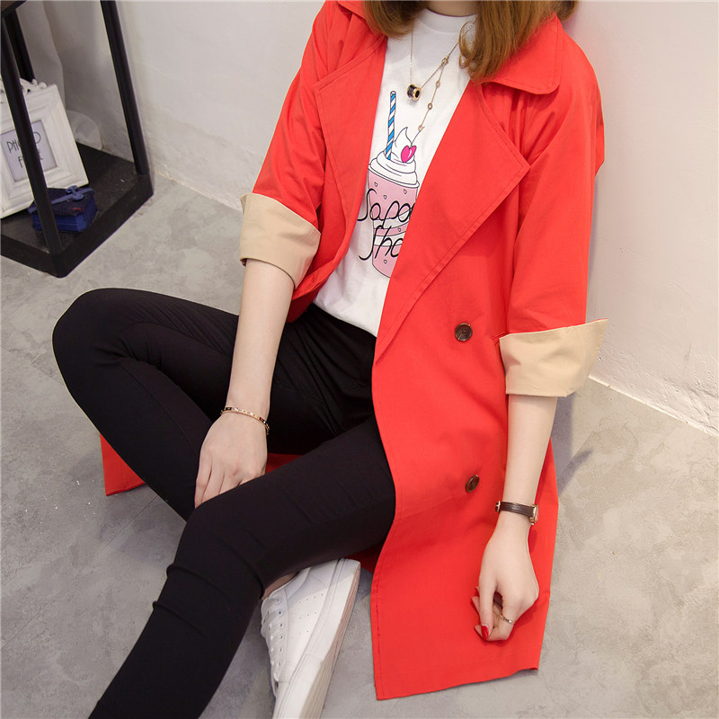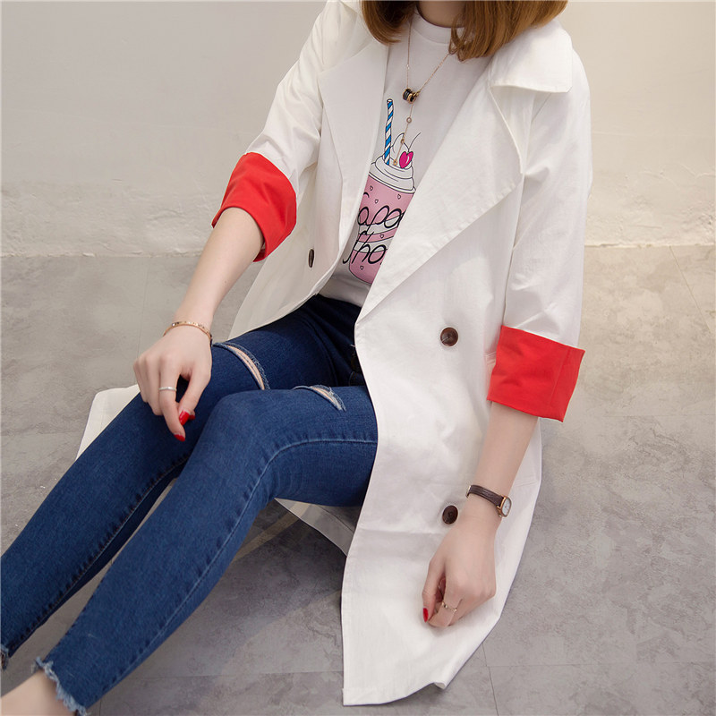 / 風衣女中長款韓版春季新款寬松連帽百搭簡約長袖薄外套防曬衣