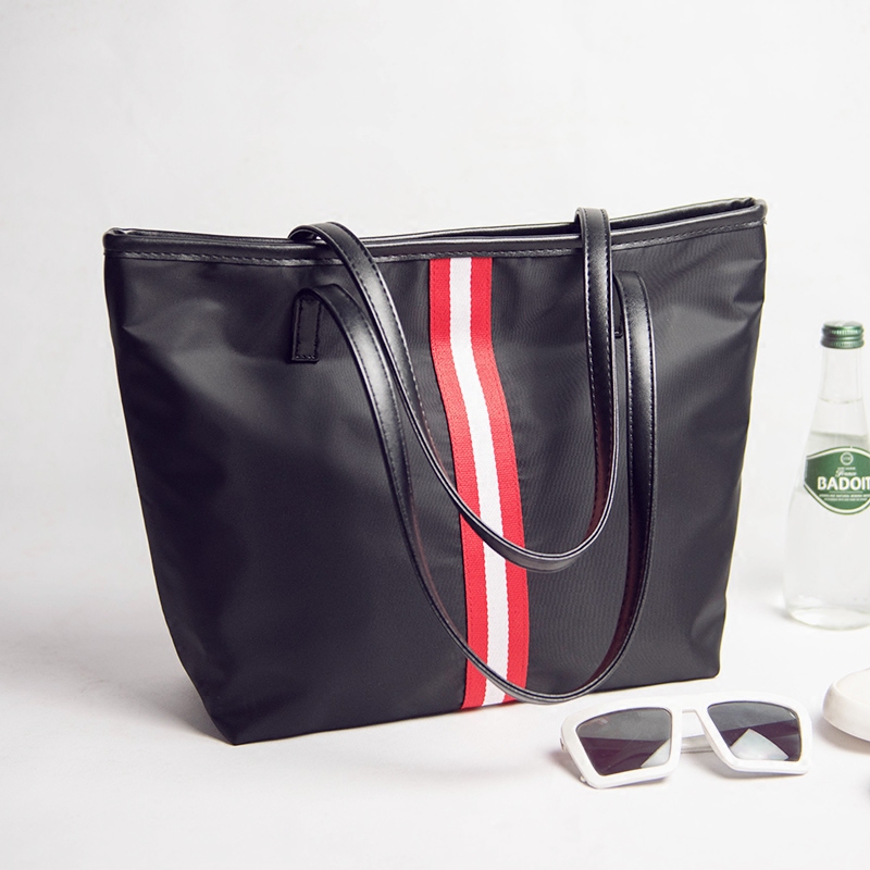 新款豎條紋尼龍女包帆布包韓版防水牛津布單肩包手提大包包潮