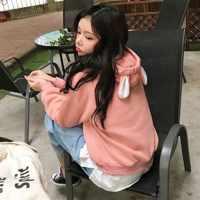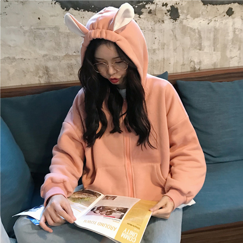 可愛少女連帽衛衣外套女秋冬裝2018新款學生韓版慵懶寬松長袖開衫