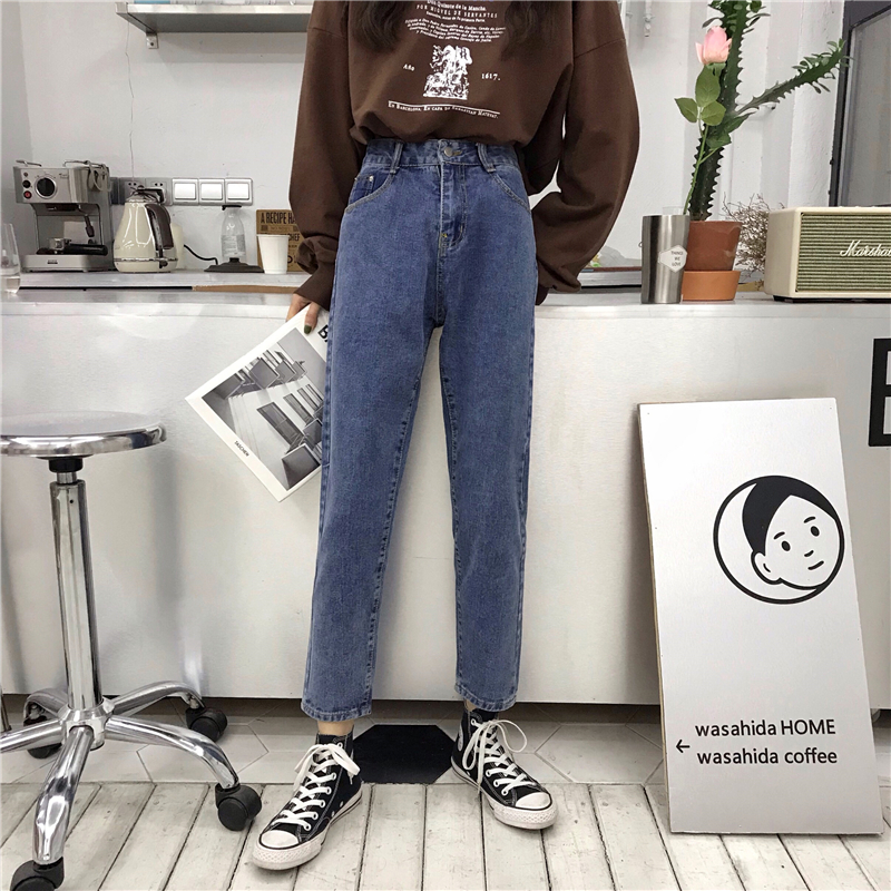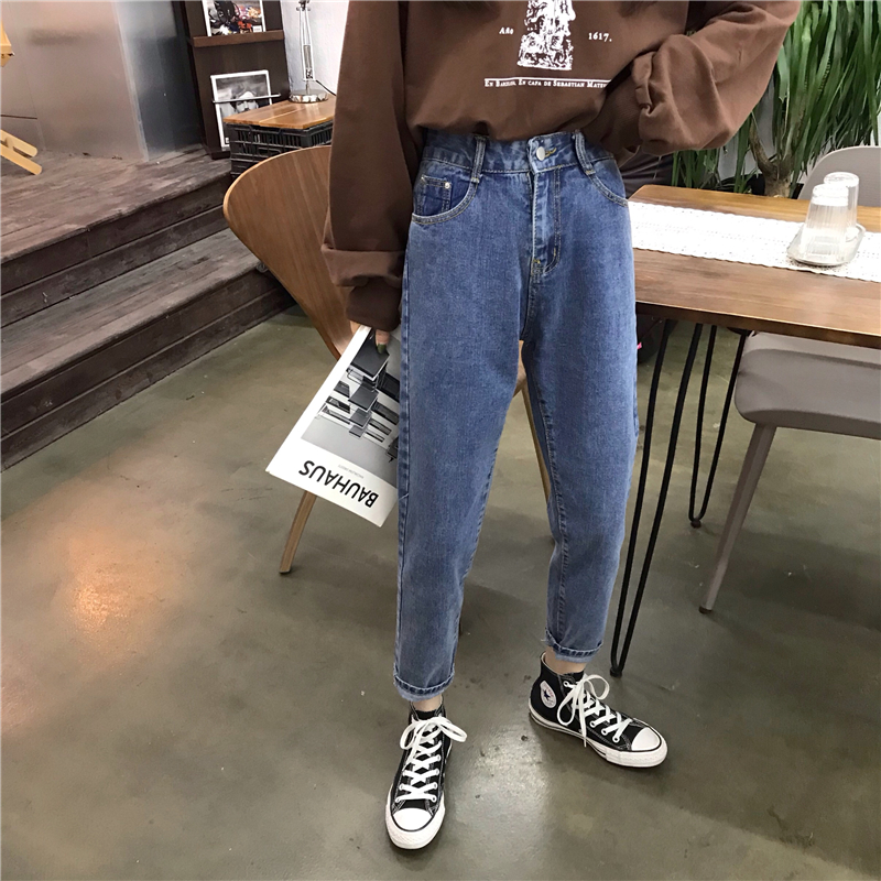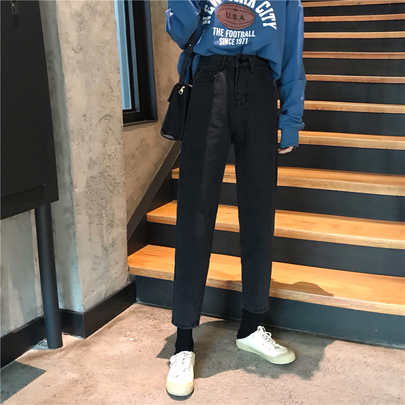 2018新款秋冬韓版寬松顯瘦牛仔褲高腰直筒褲闊腿褲長褲學生褲子女