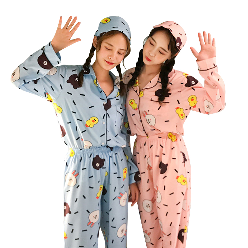 / 韓版秋裝時尚小清新可愛卡通長袖睡衣套裝學生休閑家居服兩件套女