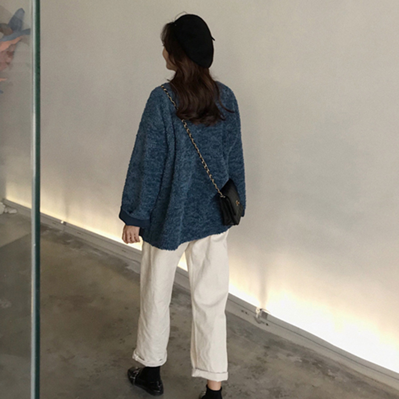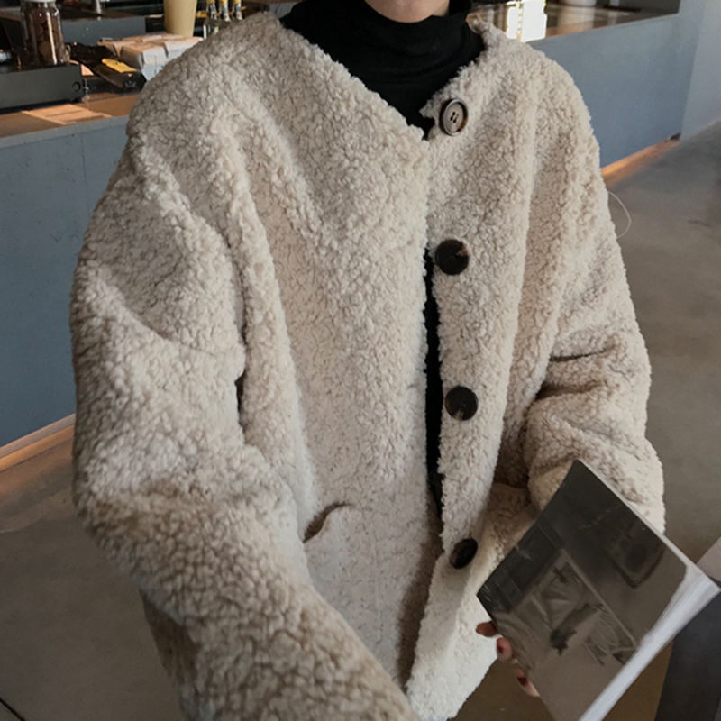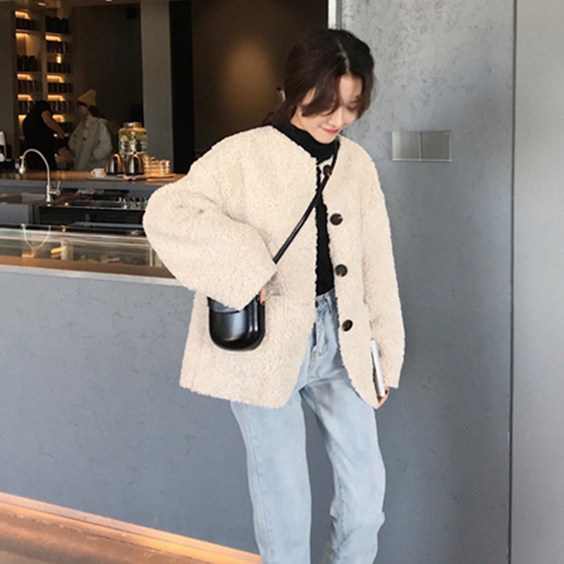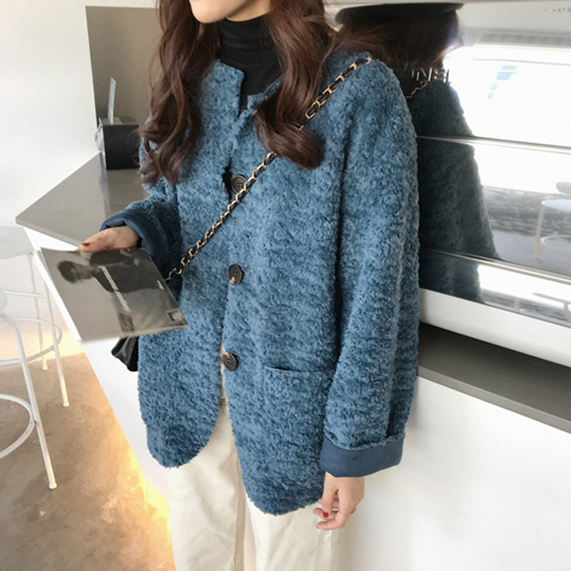 慵懶風中長款羊羔毛開衫女秋冬裝2018新款韓版寬松單排扣長袖外套