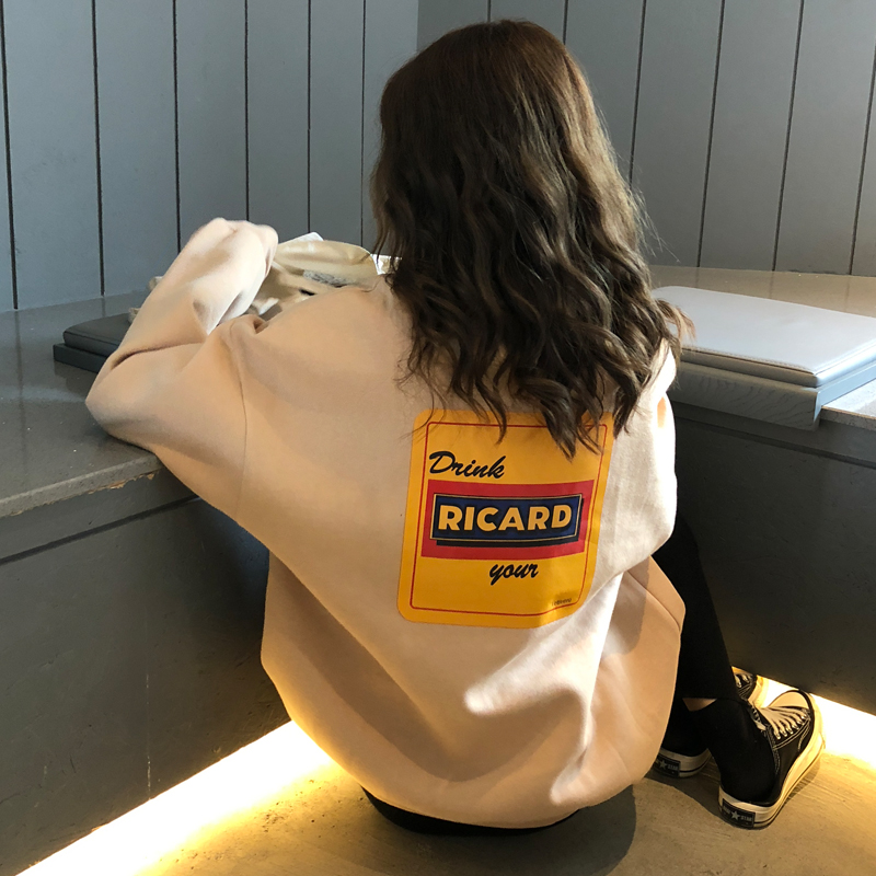 2018新款秋冬女裝韓版中長款原宿風字母加絨加厚寬松超火衛衣外套
