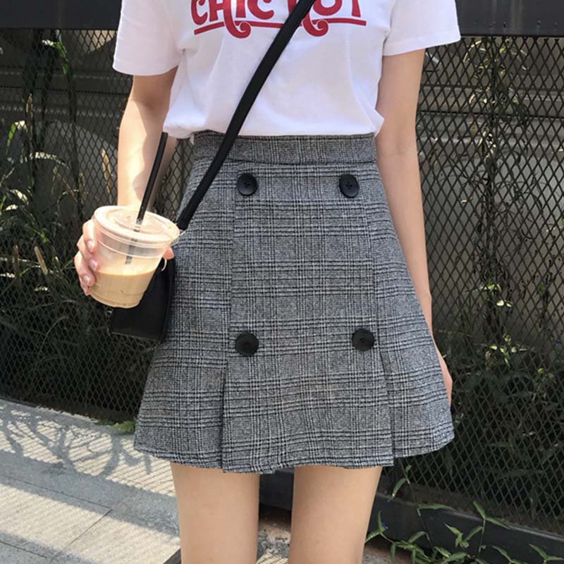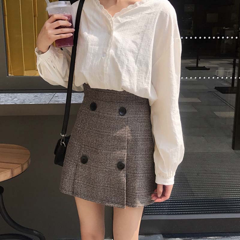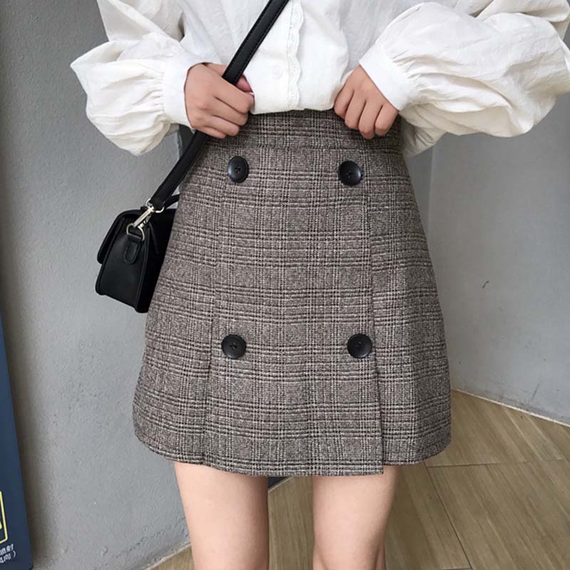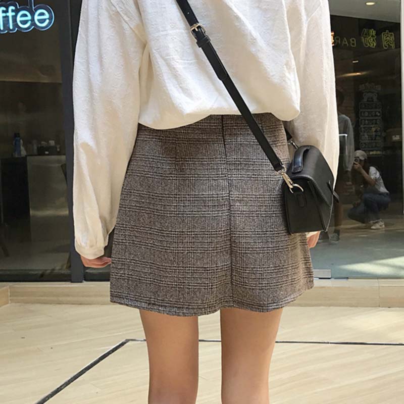 / 秋裝女新款韓版高腰顯瘦A字裙復古格子毛呢半身裙學院風休閑短裙