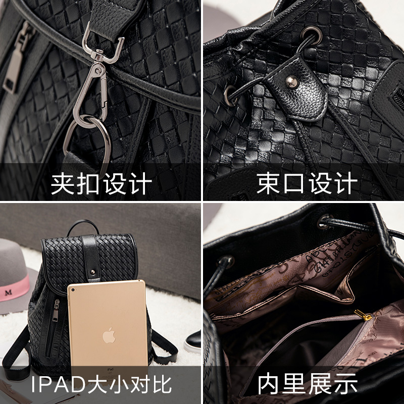 雙肩包女韓版pu時尚個性百搭編織包包新款女士背包女潮