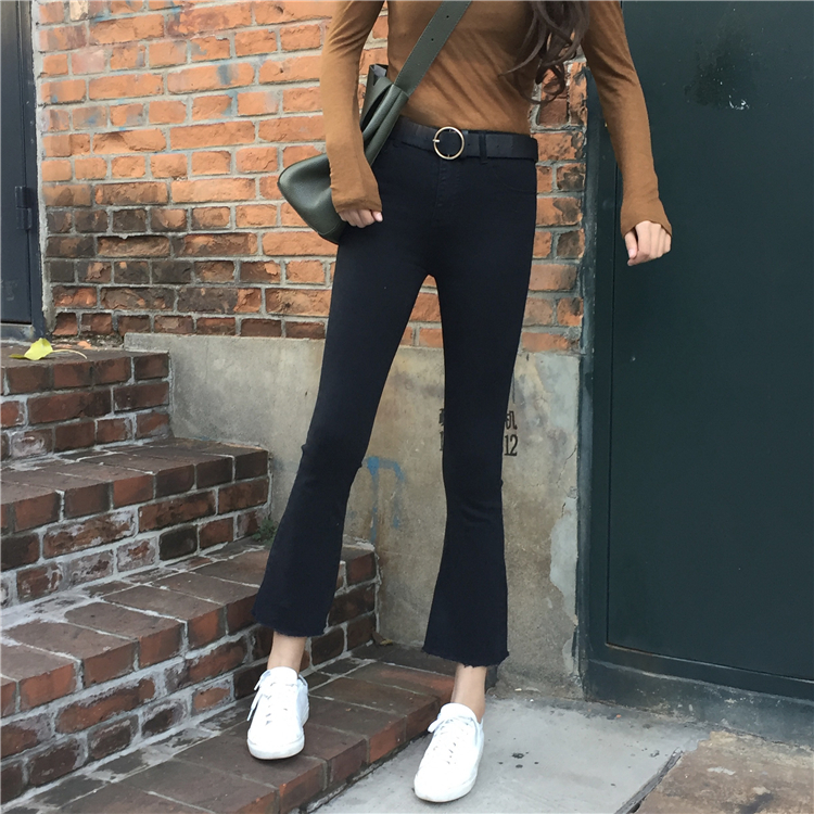 今年流行這種九分設計的喇叭褲了