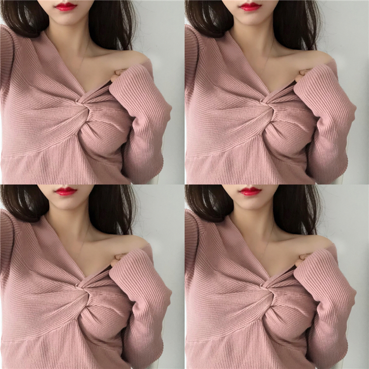 秋冬網紅毛衣女2018新款針織衫女長袖交叉紐結純色打底衫修身上衣