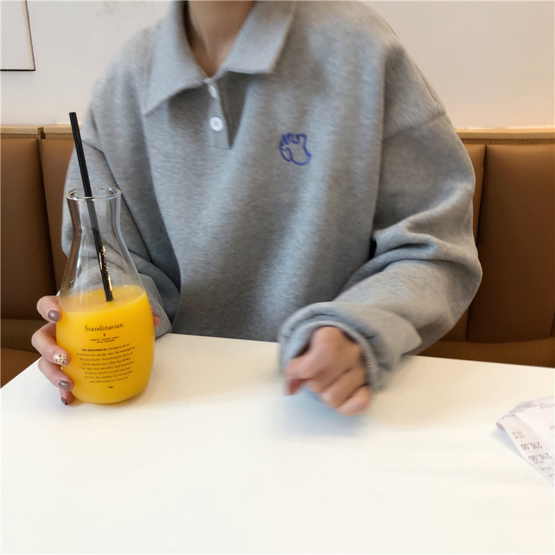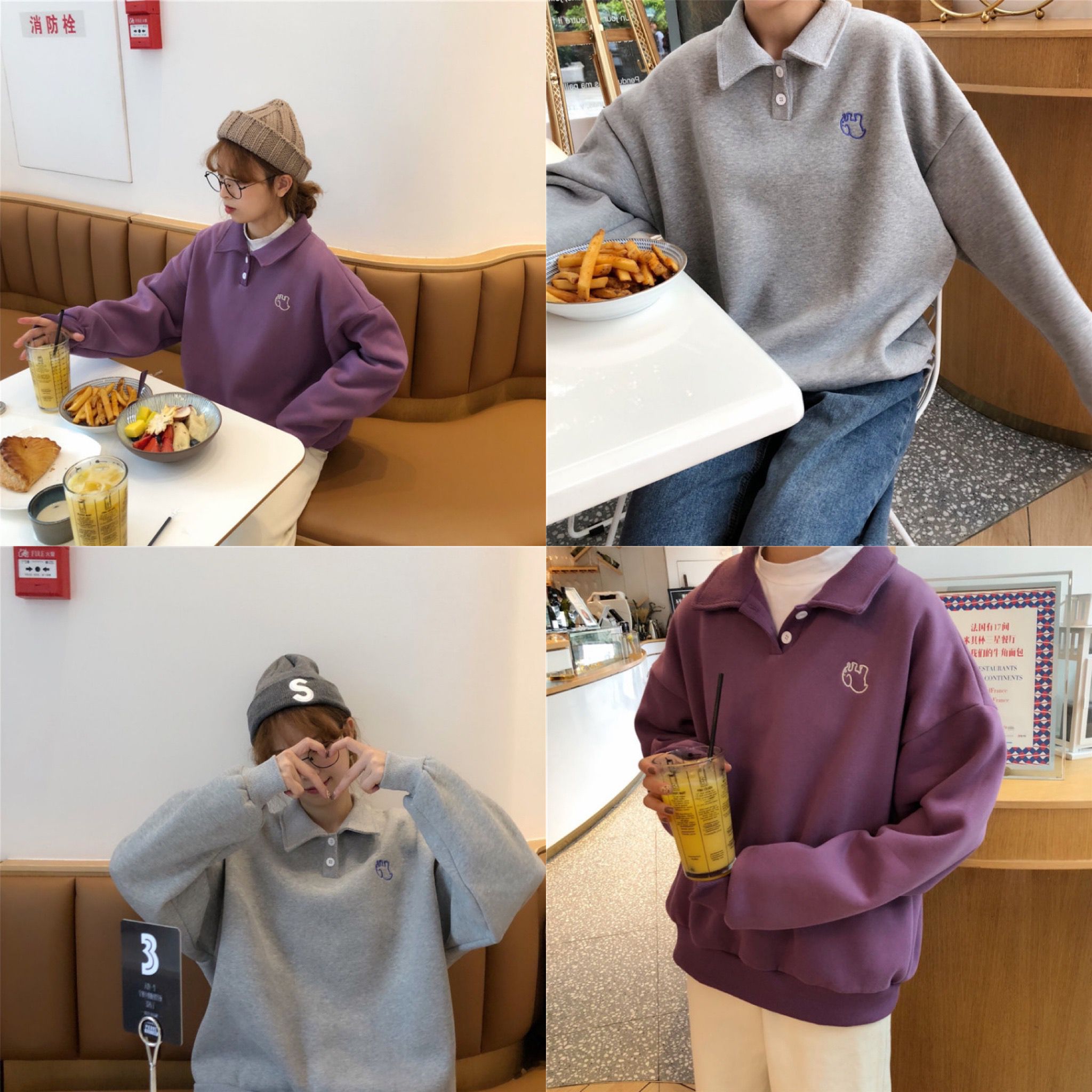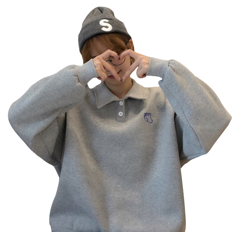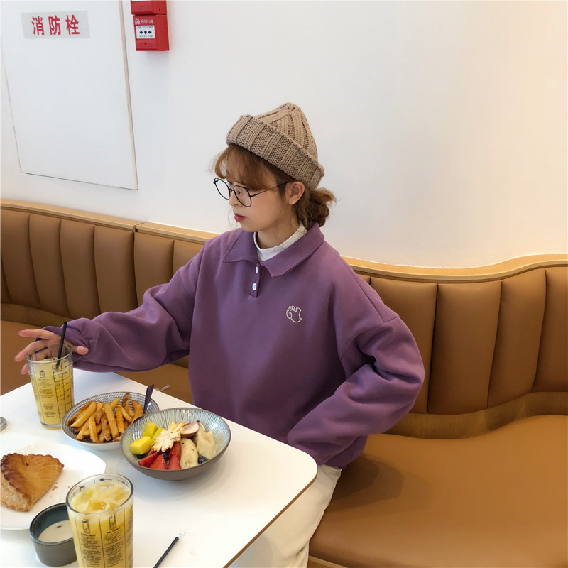 / 2018新款秋冬韓版學院風寬松卡通刺繡加厚加絨polo衛衣上衣外套女