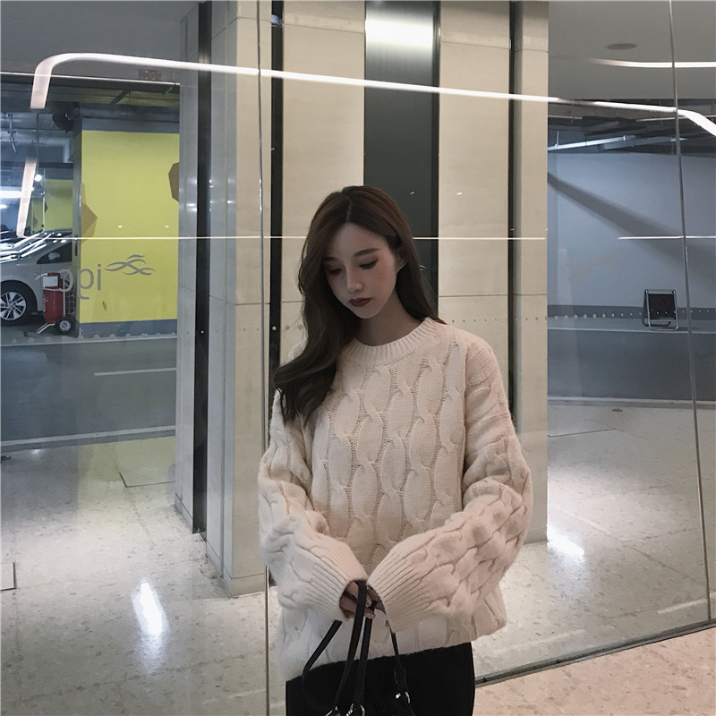 / 復古麻花懶惰風寬松毛衣休閑高腰毛呢束腳哈倫蘿卜褲新款時尚套裝