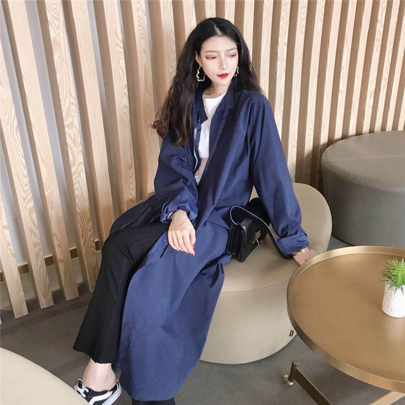 風衣女秋裝新款韓版時尚寬松中長款開衫不規則長袖過膝蓋休閑外套