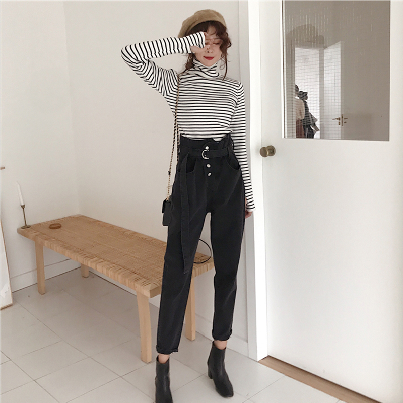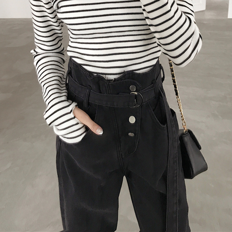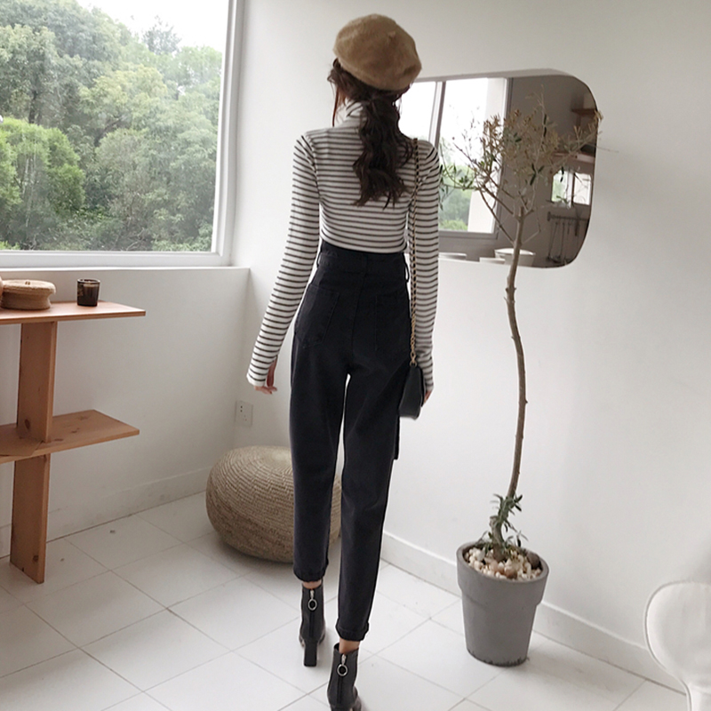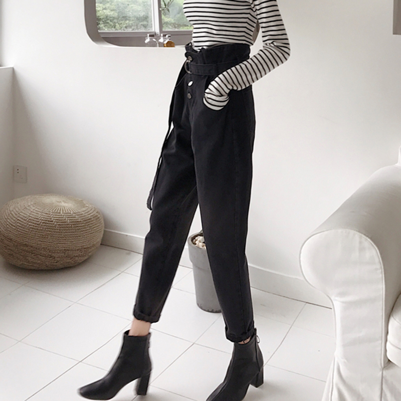 秋冬女裝2018新款高腰顯瘦怪味牛仔哈倫長褲學生復古黑色老爹褲子