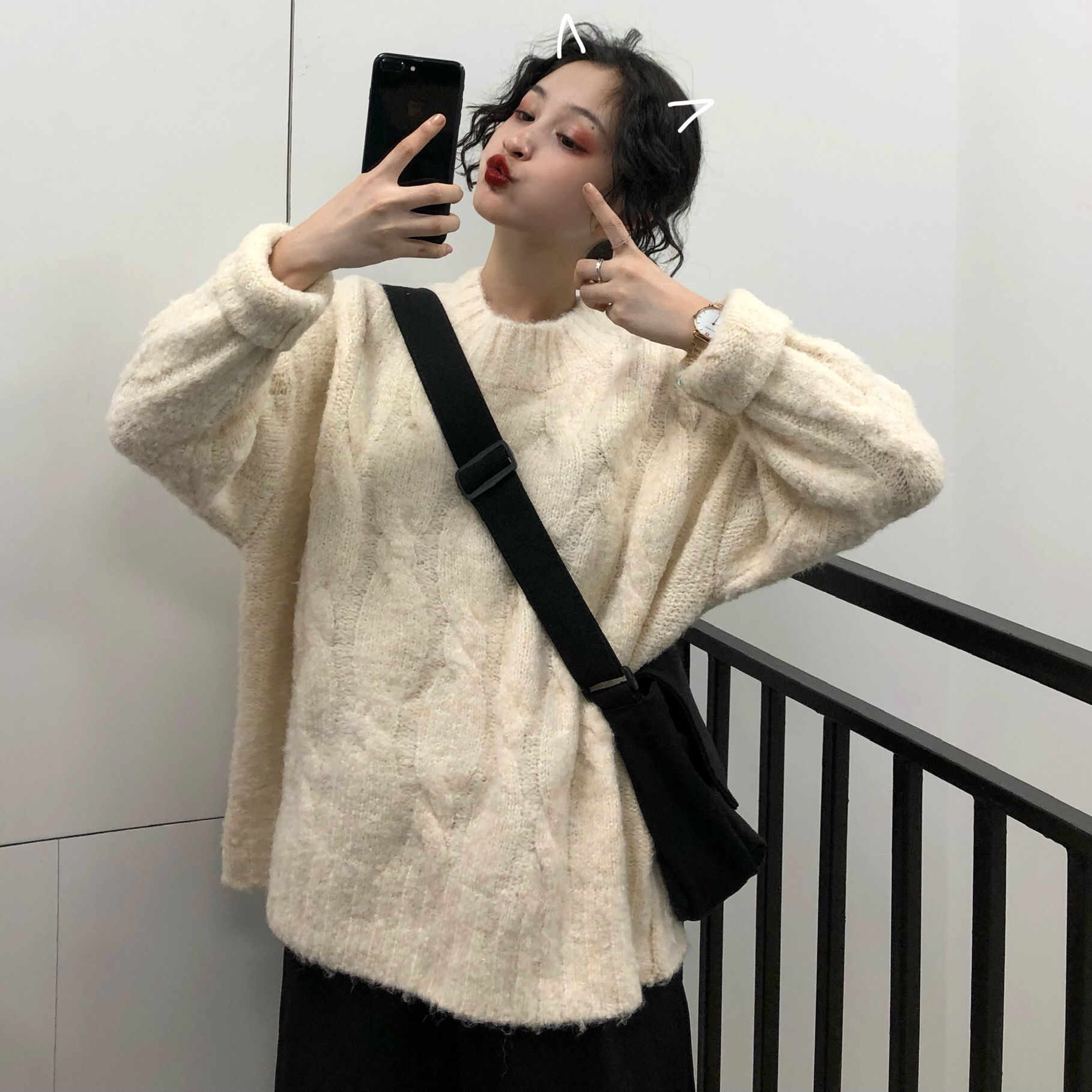 馬海毛麻花套頭毛衣女秋冬2018新款時尚韓版百搭厚實長袖針織衫潮