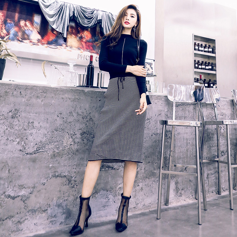 輕熟風女裝套裝長袖秋季針織2018新款秋裝毛衣套裝兩件套條紋裙子