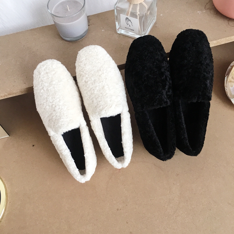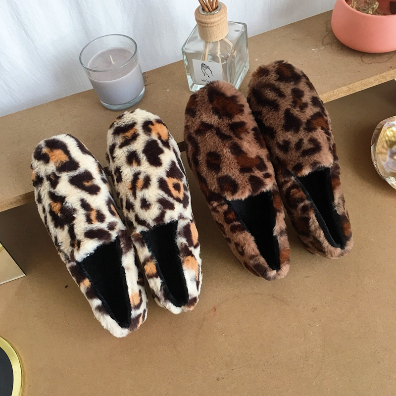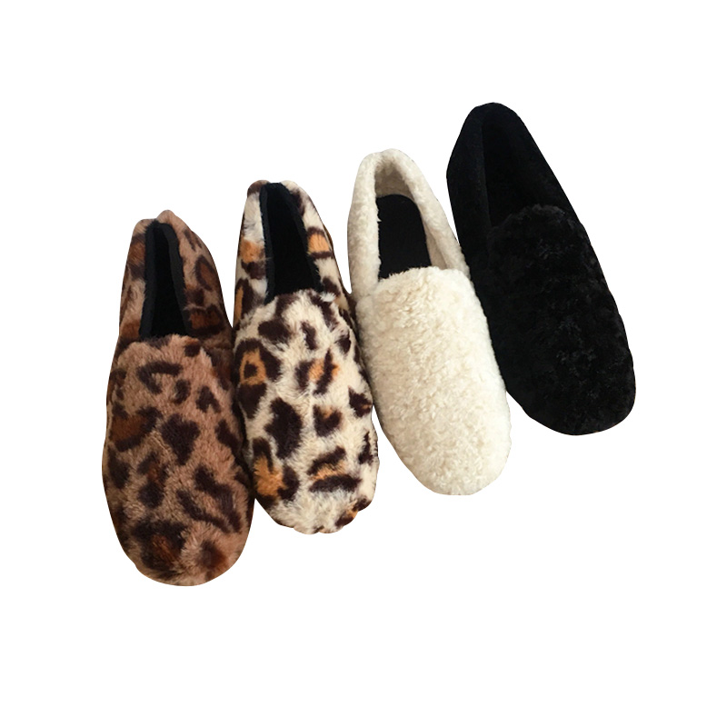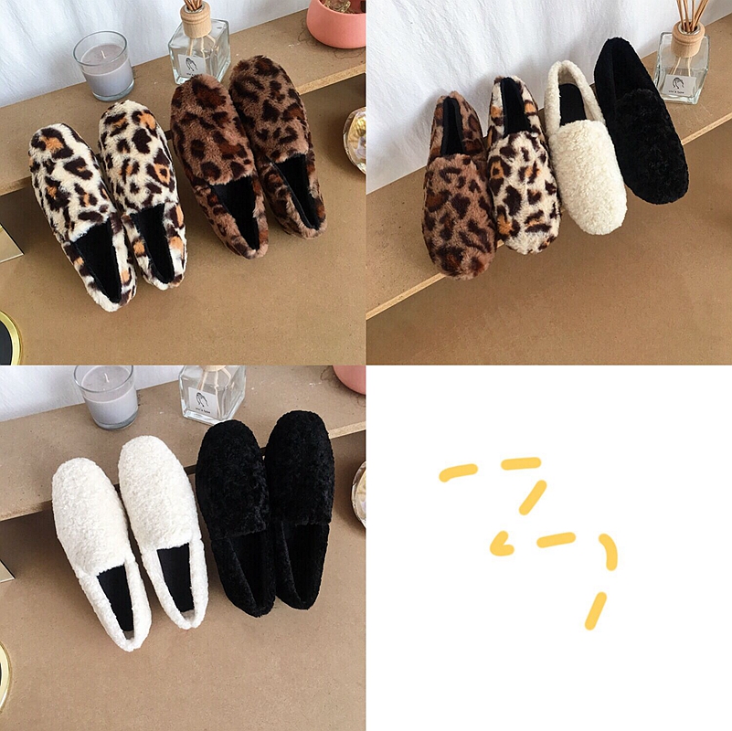 / 秋冬網紅同款時尚百搭平底單鞋女懶人豆豆鞋加絨瓢鞋豹紋毛毛鞋潮