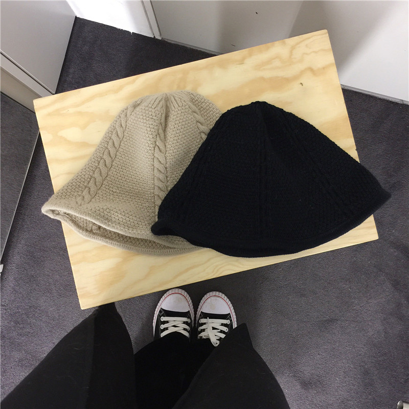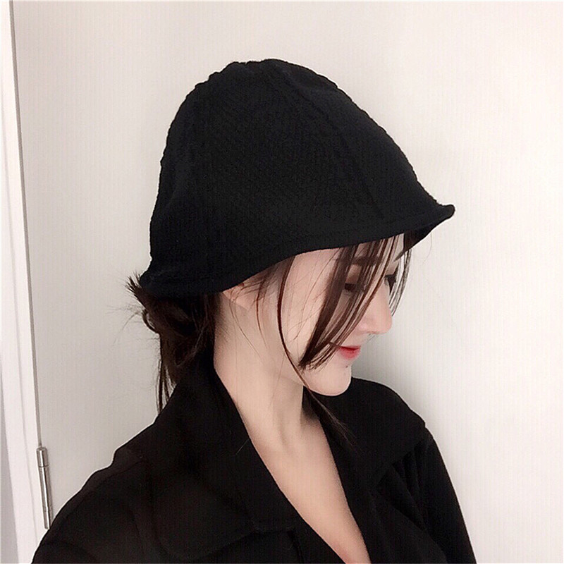 / 韓國chic秋冬百搭純色折疊彈力遮陽帽學生復古針織毛線帽子女