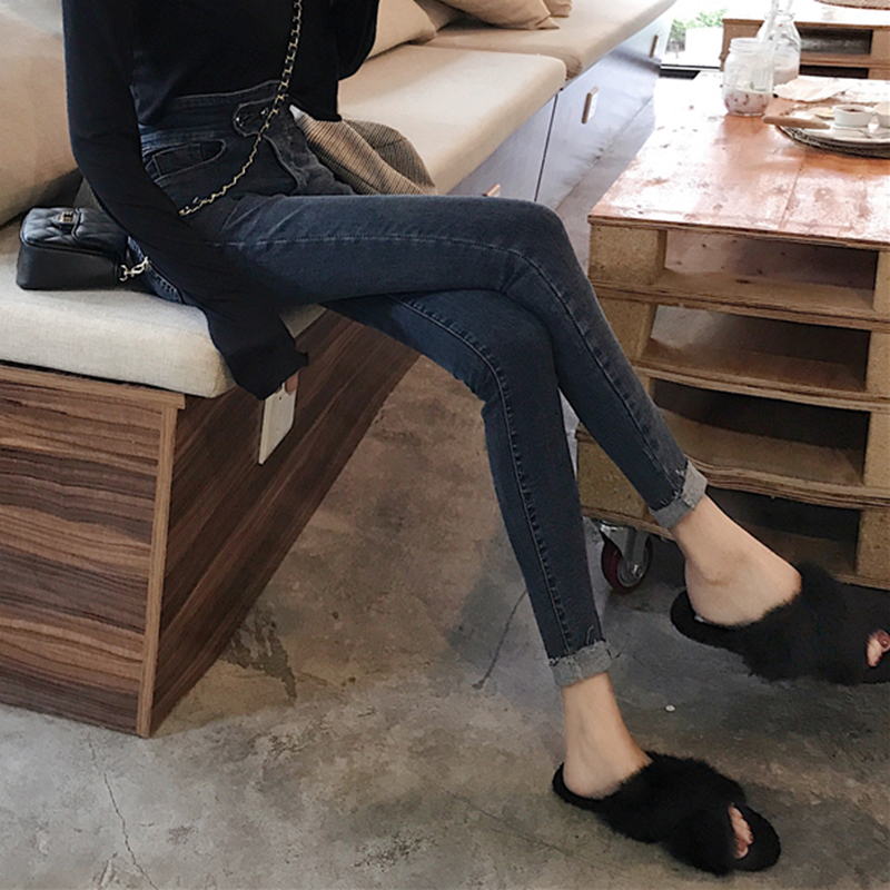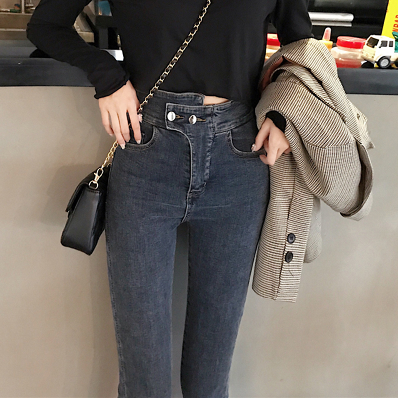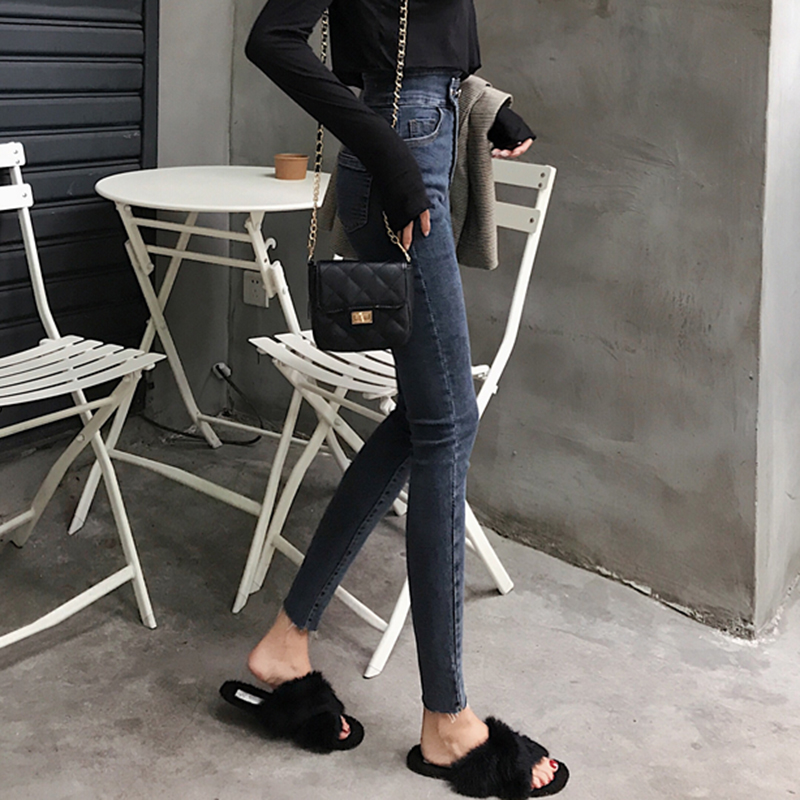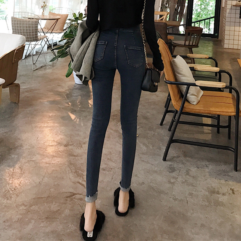 / 高腰顯瘦加絨緊身牛仔褲女秋冬裝新款學生復古休閑小腳鉛筆長褲子