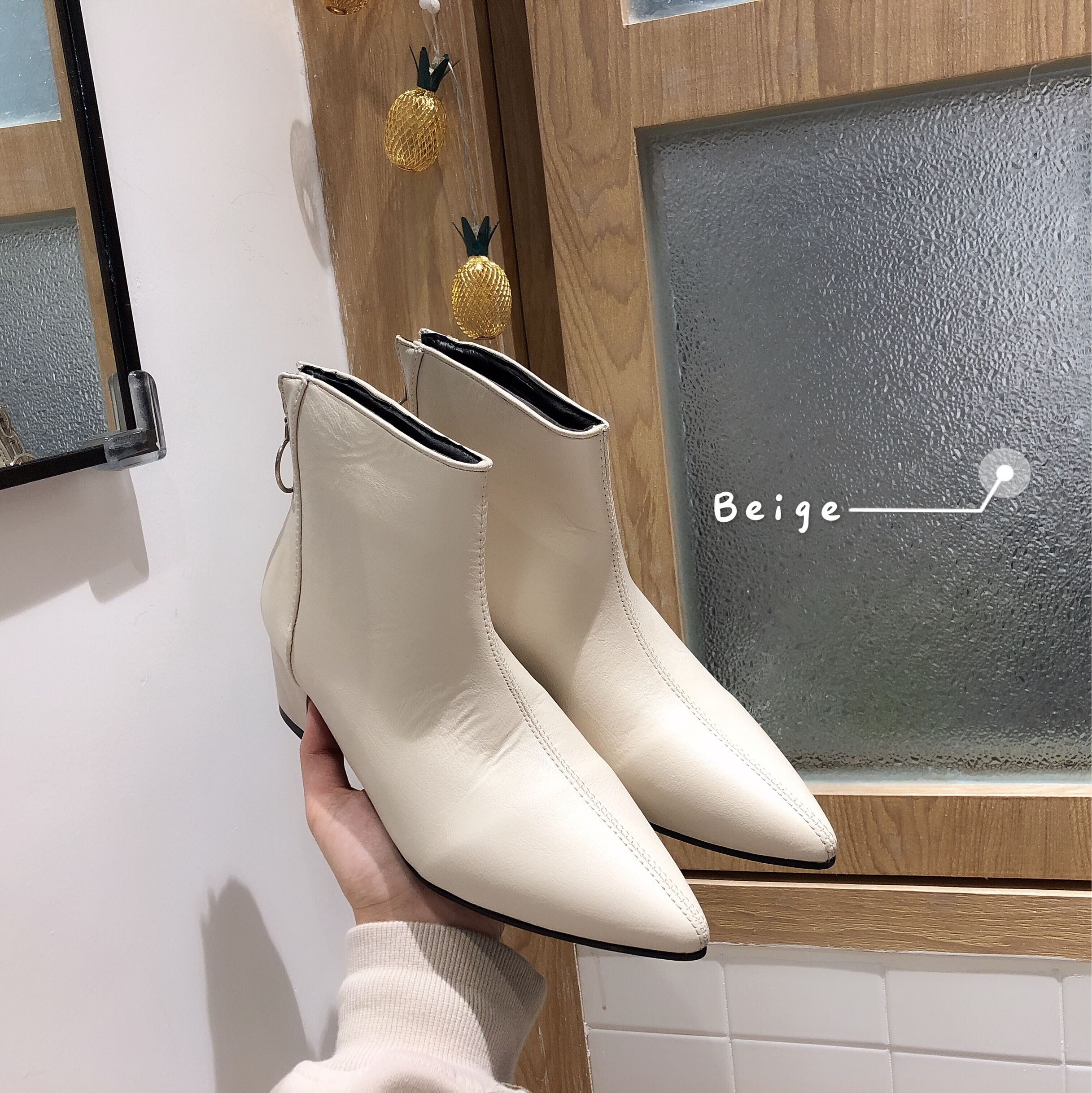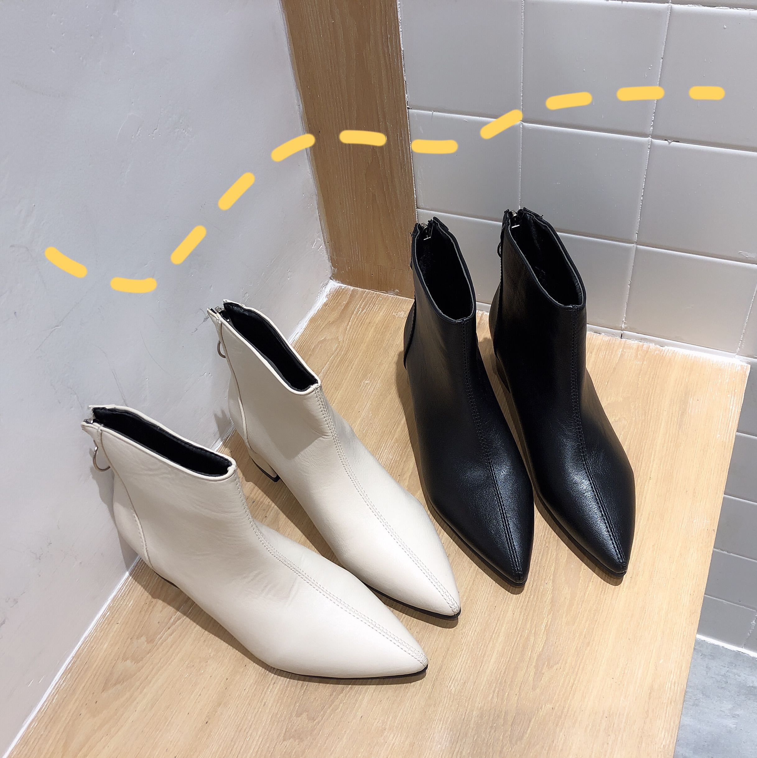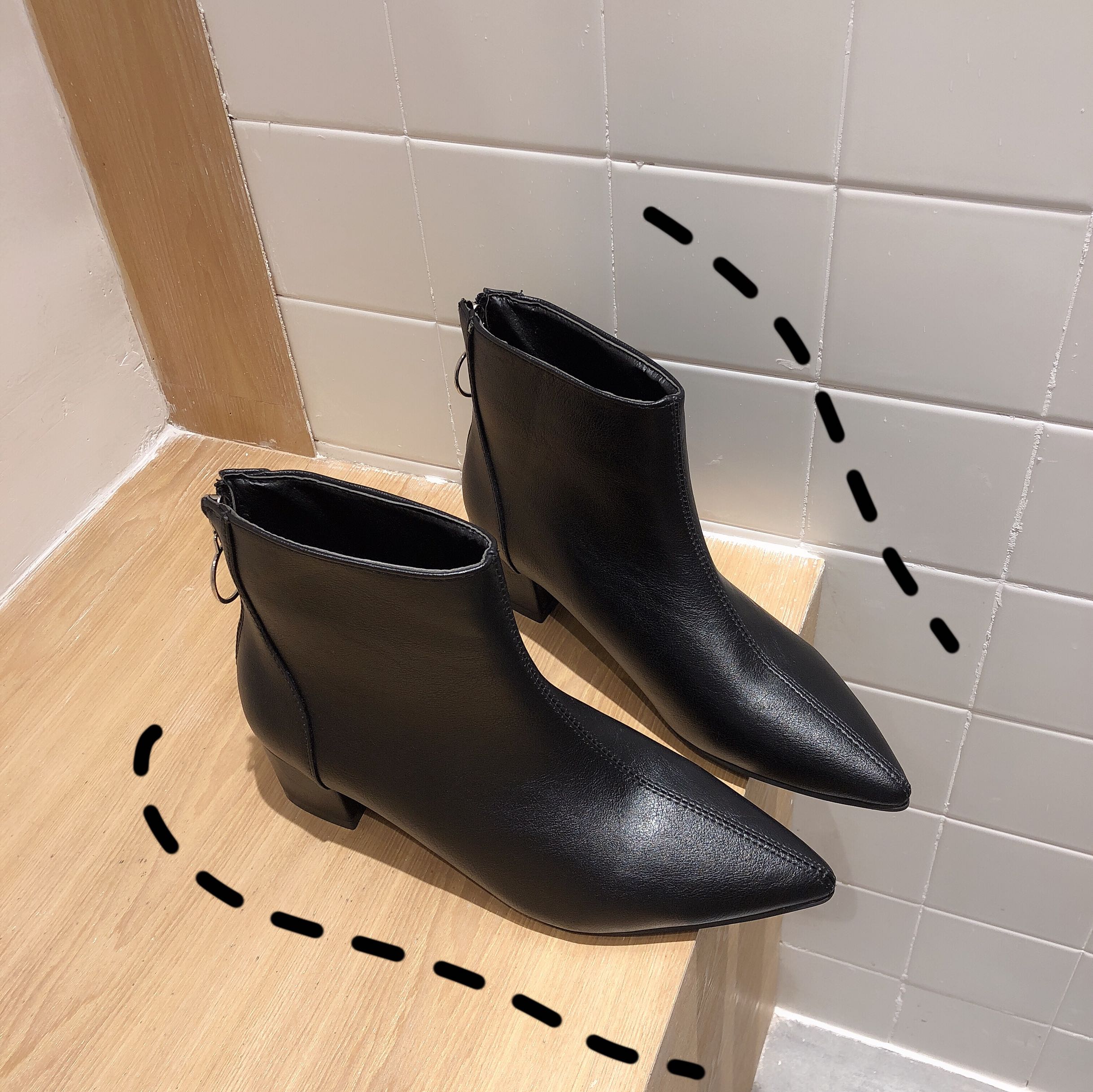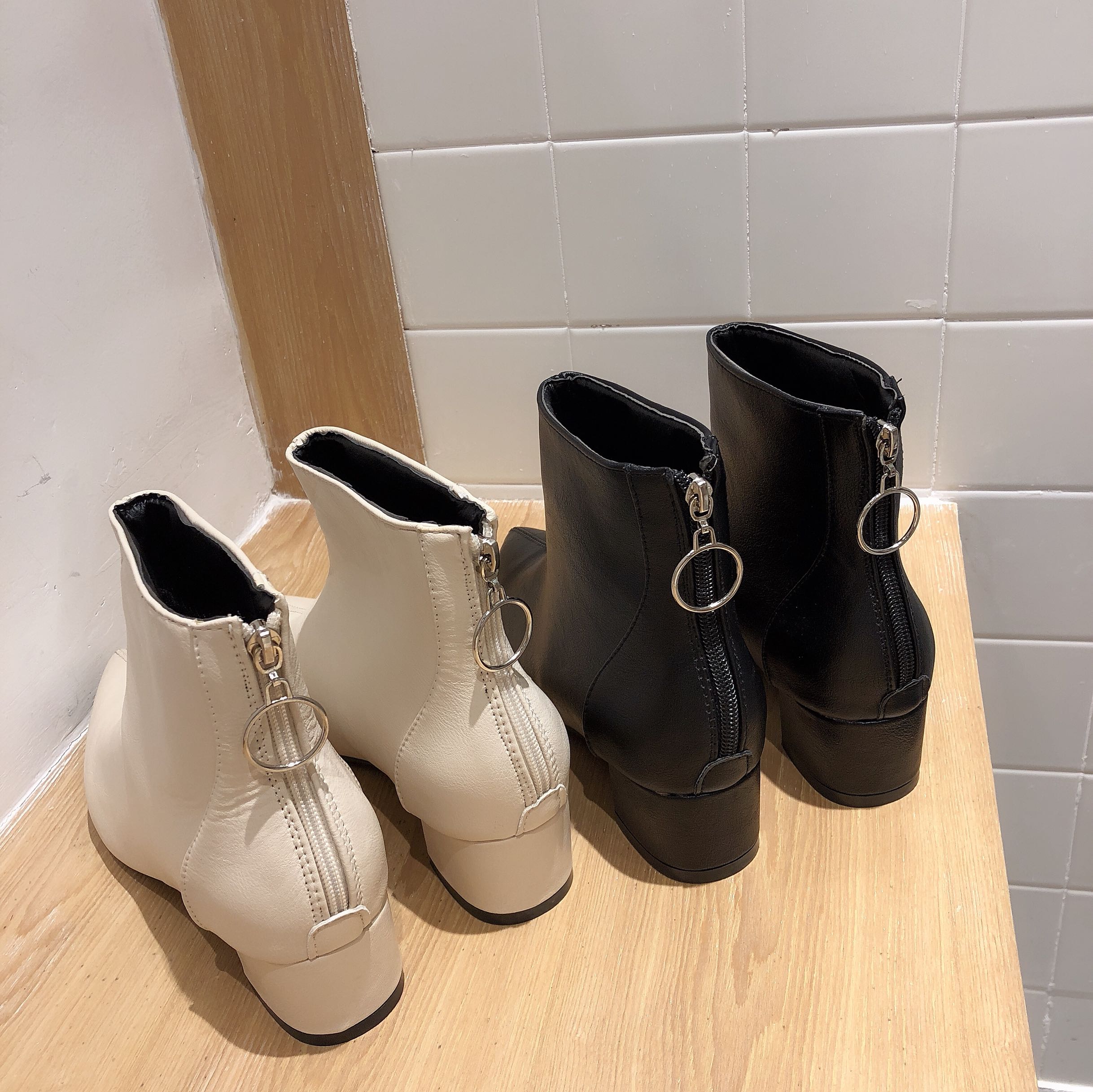 / 韓國冬季新款百搭時尚短靴女高跟鞋顯瘦裸靴中跟尖頭細跟馬丁靴潮