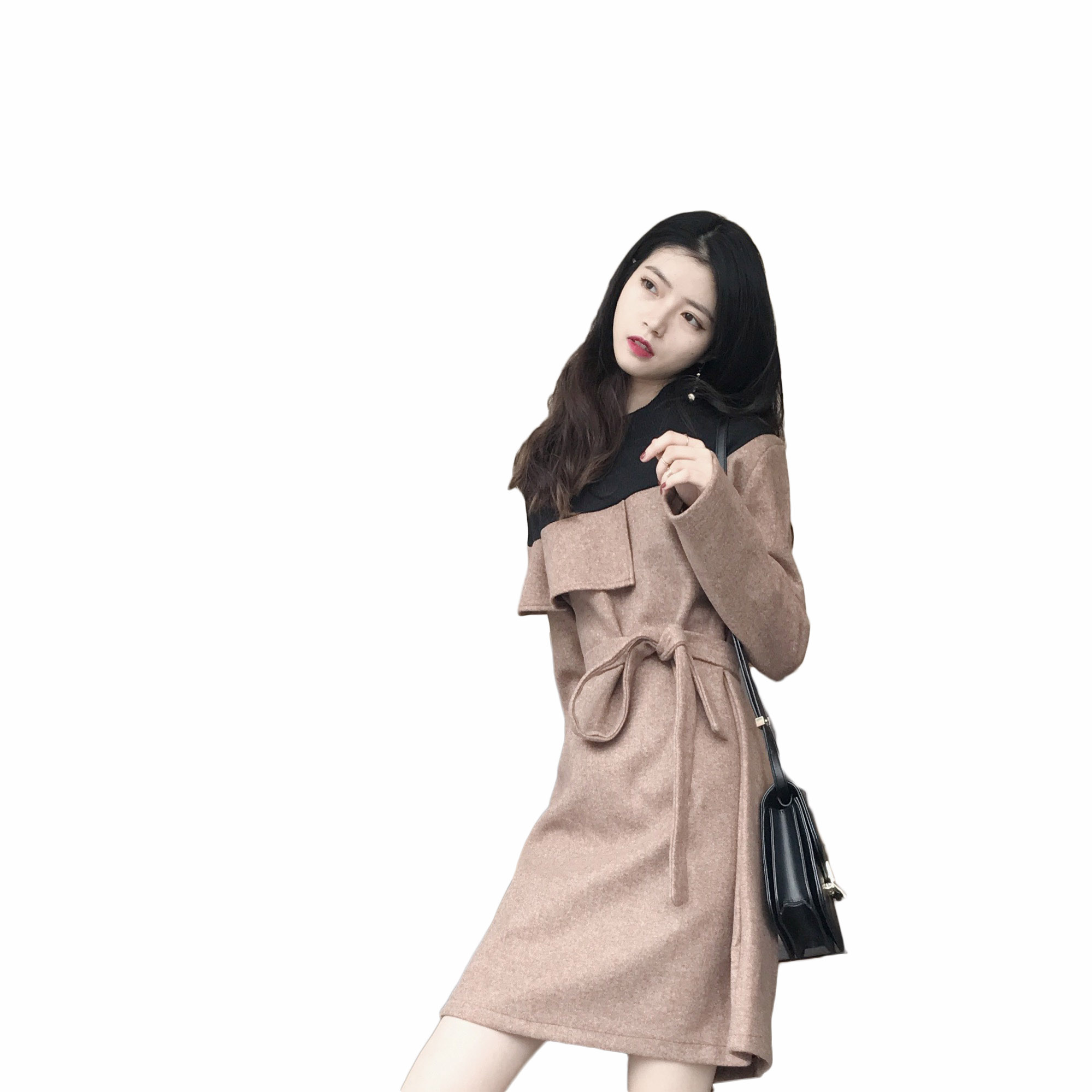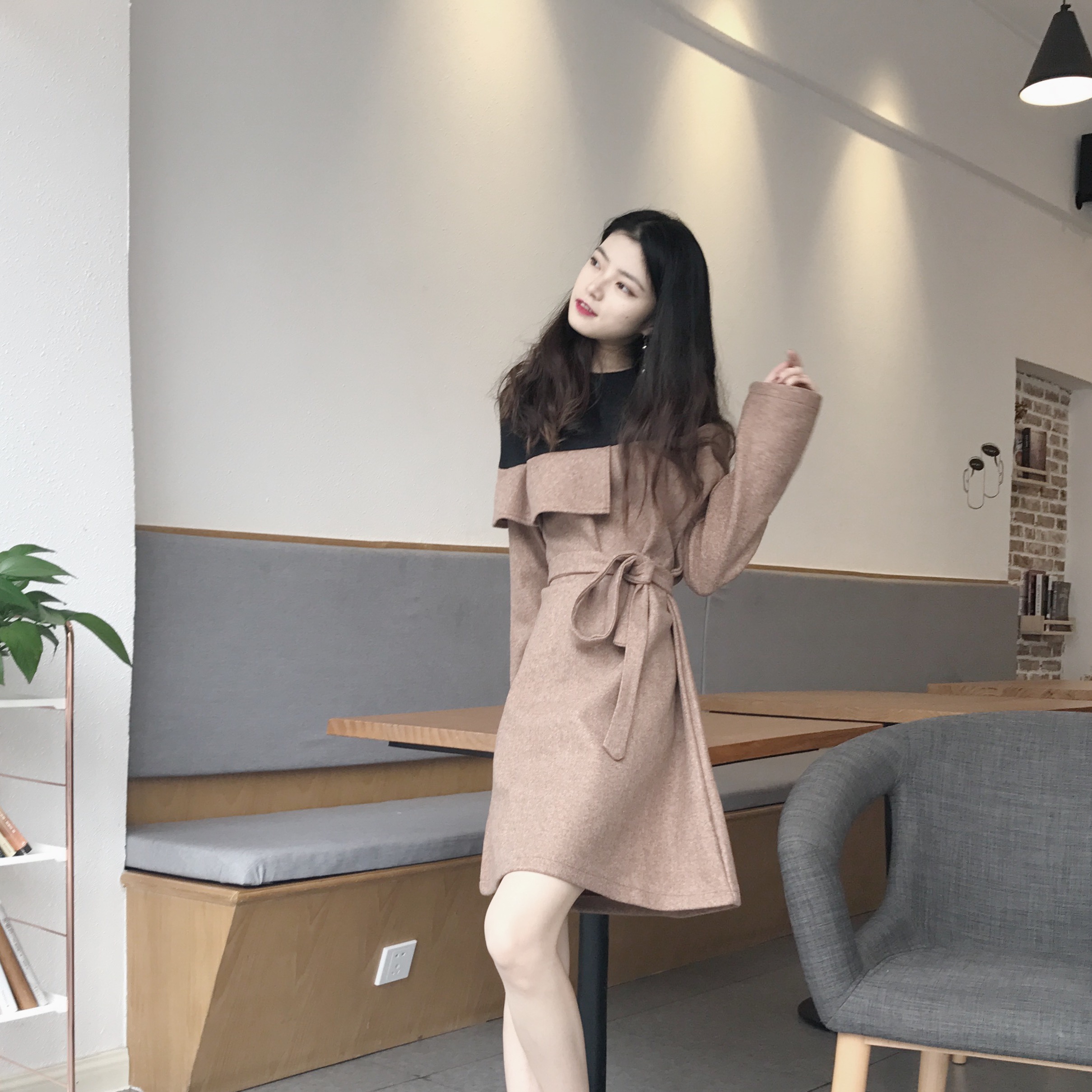 這款秋冬厚毛呢連衣裙的胸前一片式的荷葉邊設計,十分新穎,可以說是很大牌了,顏色都不挑人不穿,偏紅色的卡其和麻灰色的顏色都比較少見,加上假兩件的設計,單穿打底都很不錯,還有送相同面料的腰帶,喜歡修身或寬松的小仙女都可以hold住~