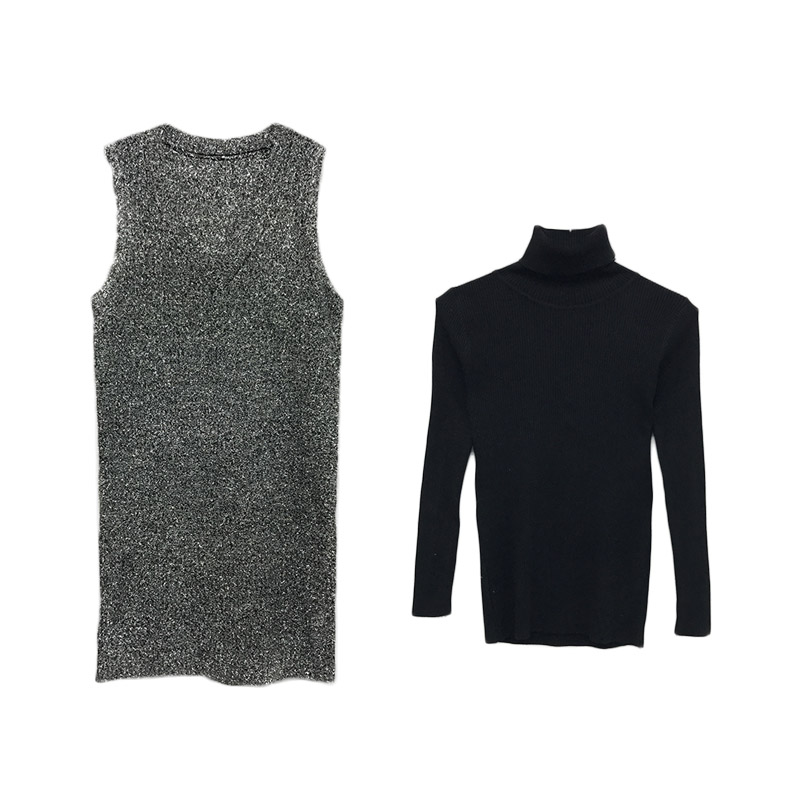 黑色毛衣|咖色毛衣|銀色裙子|黑色裙子