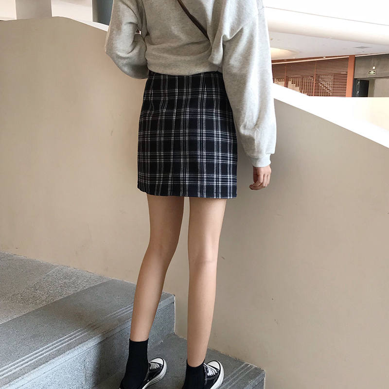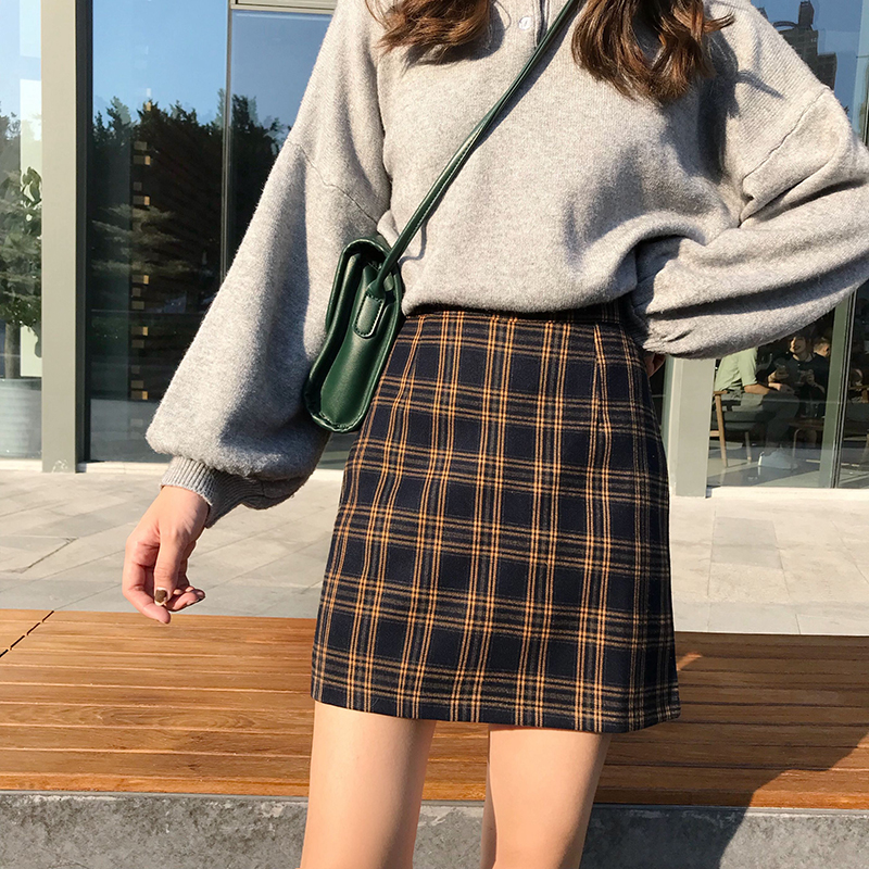 / 韓版chic格子半身裙秋裝女2018新款學生高腰A字裙清新休閑短裙子