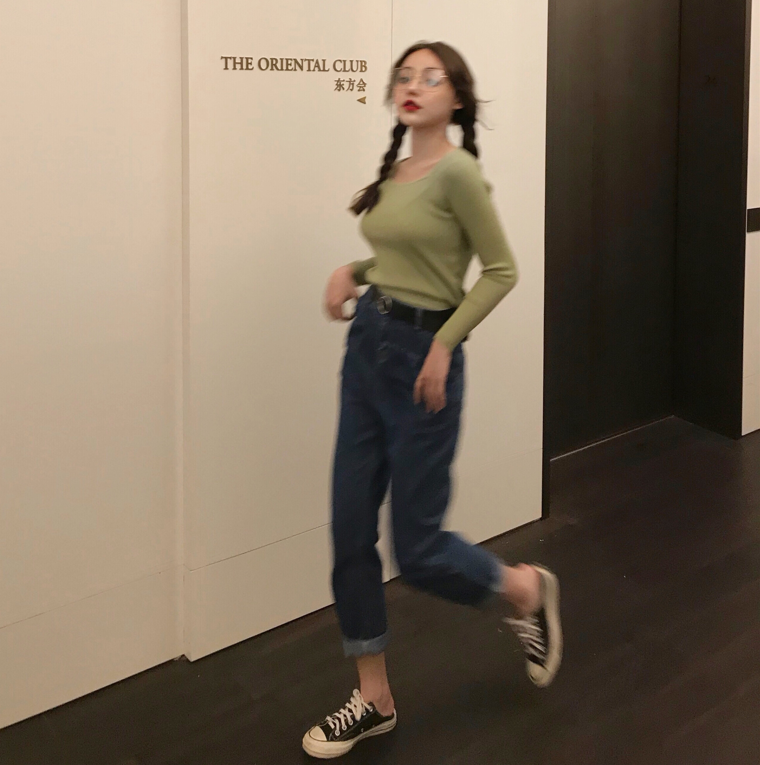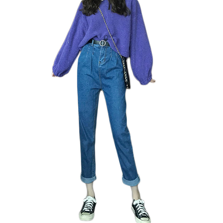 / 韓版秋冬款高腰牛仔褲顯瘦休閑百搭寬松哈倫褲長褲子(送腰帶)潮