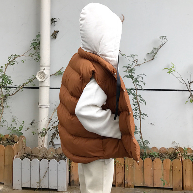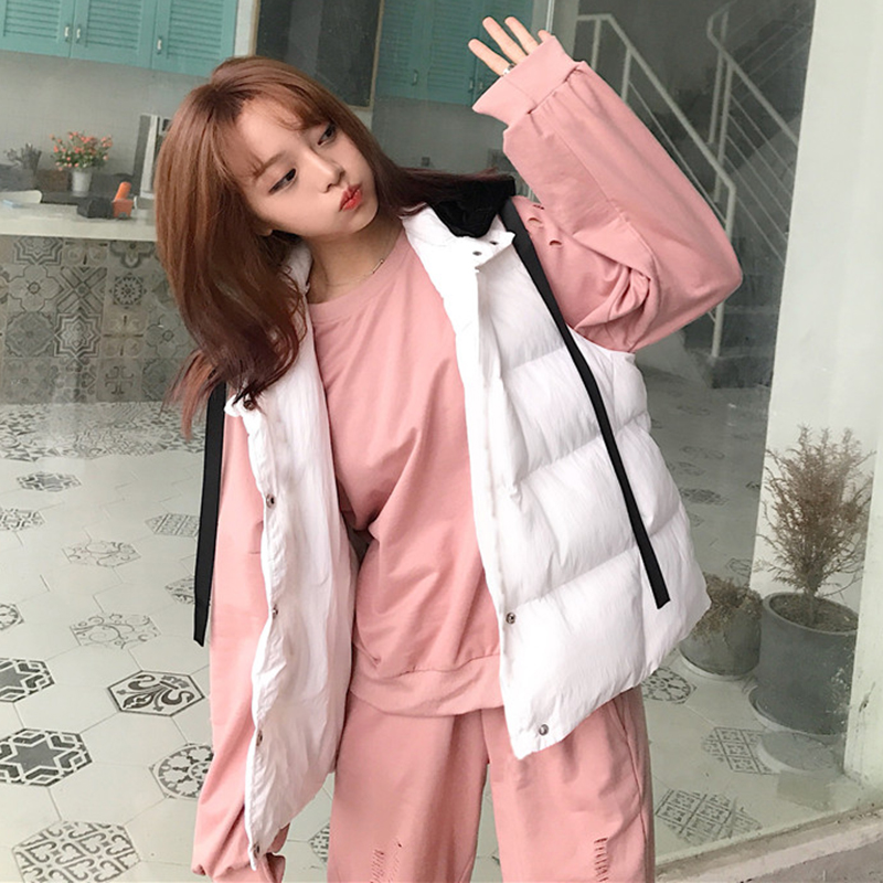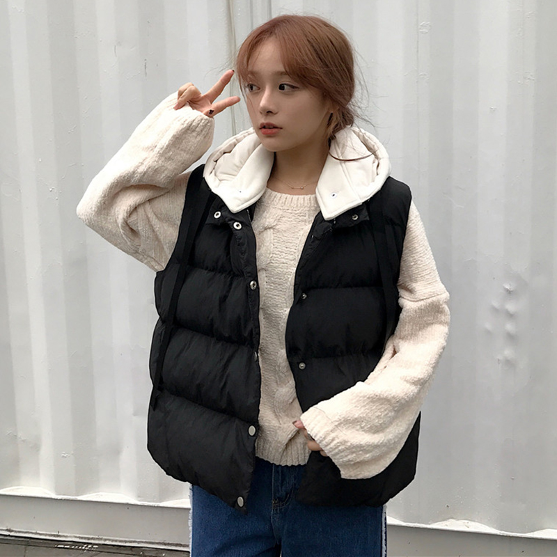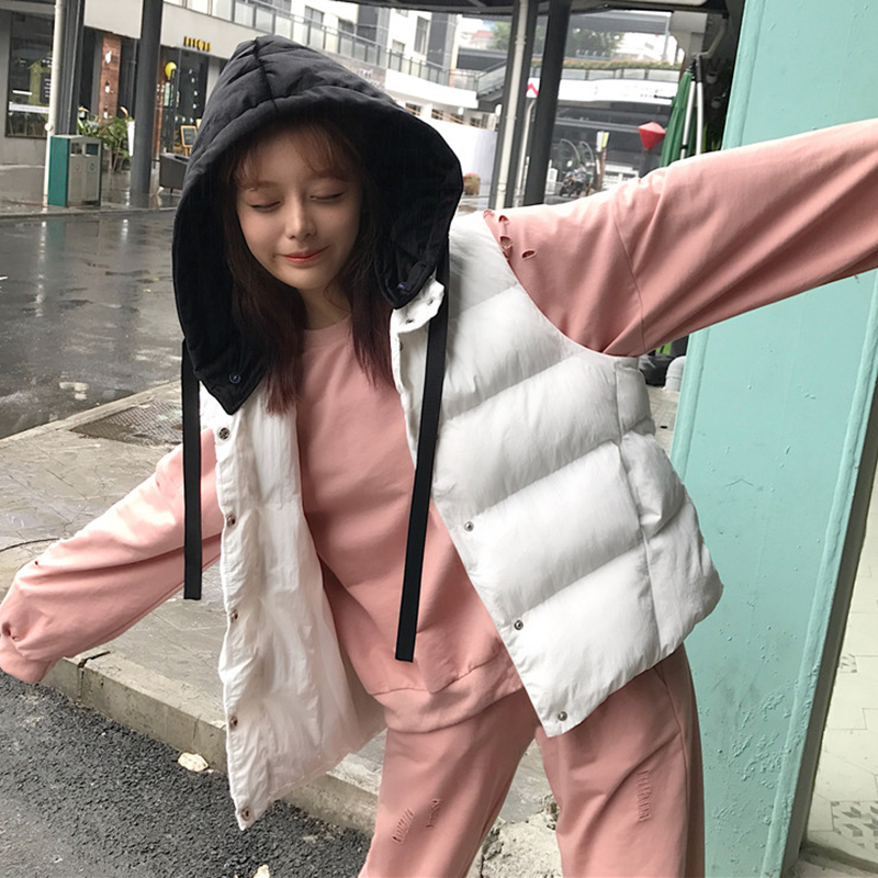 / 時尚拼色連帽棉服外套秋冬女裝2018新款韓版學生休閑無袖馬甲外套