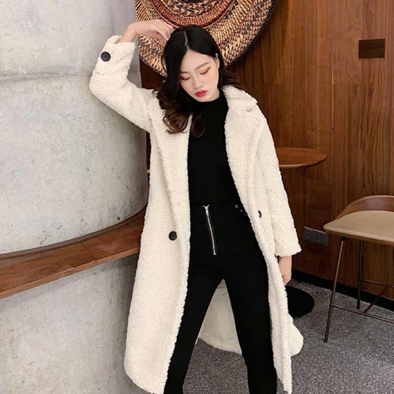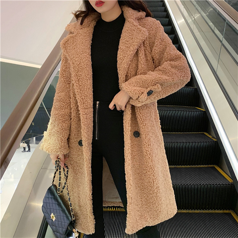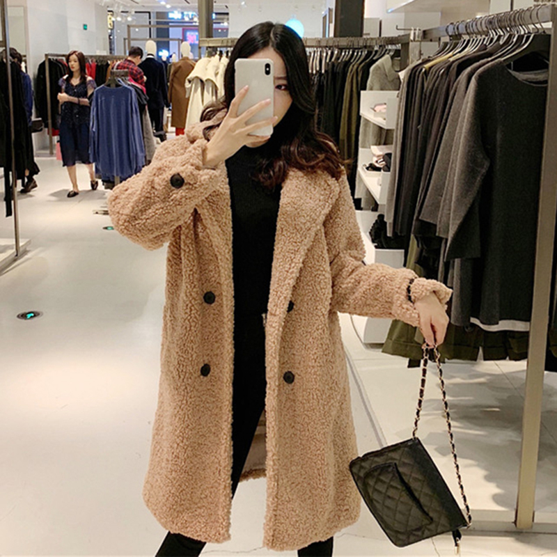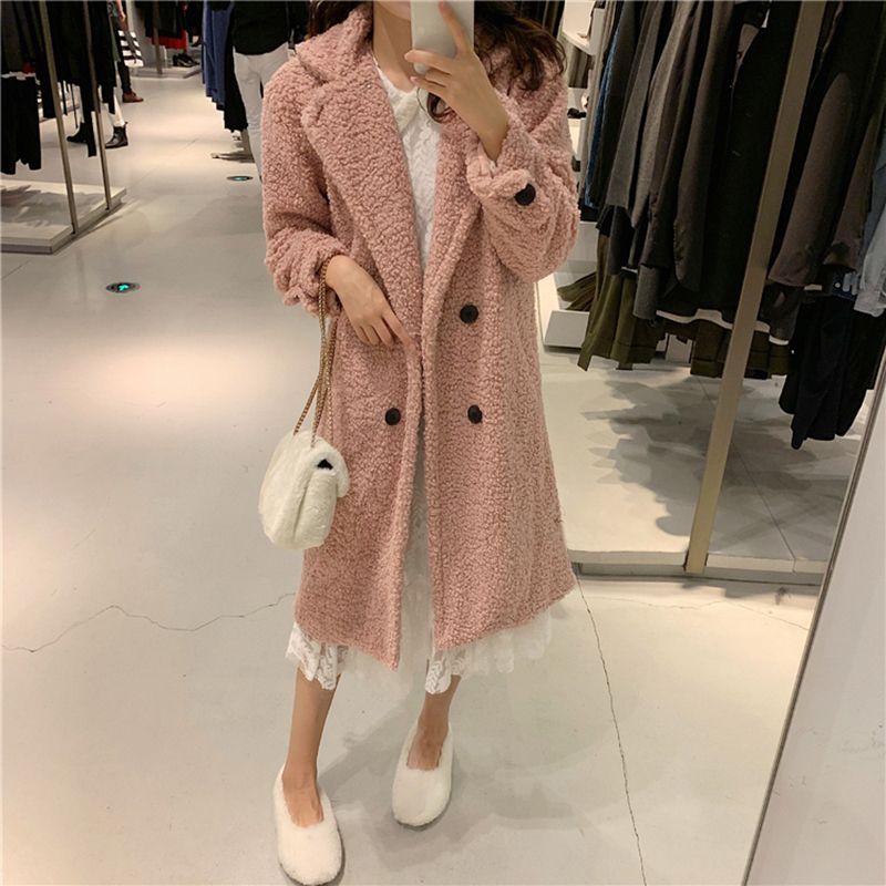 2018中長款流行大衣女秋冬裝新款韓版氣質寬松翻領保暖羊羔毛外套