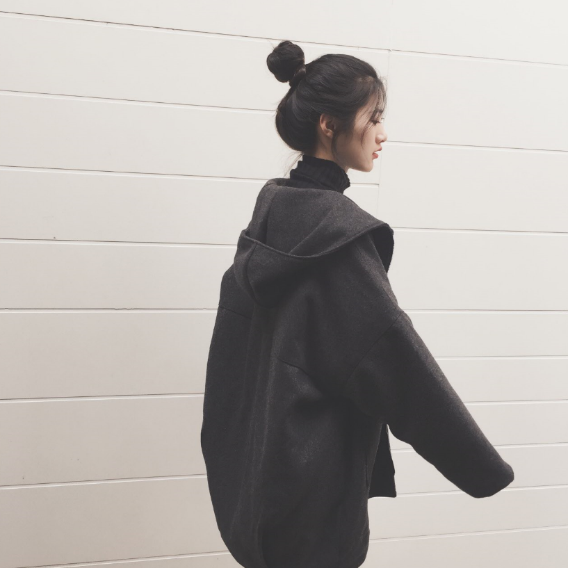 / 冬裝新款保暖時尚chic中長款百搭氣質寬松連帽加厚呢子外套大衣女