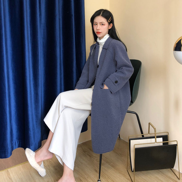 復古溫柔慵懶風隨意暖色系百搭寬松中長款毛呢外套女韓版呢子大衣