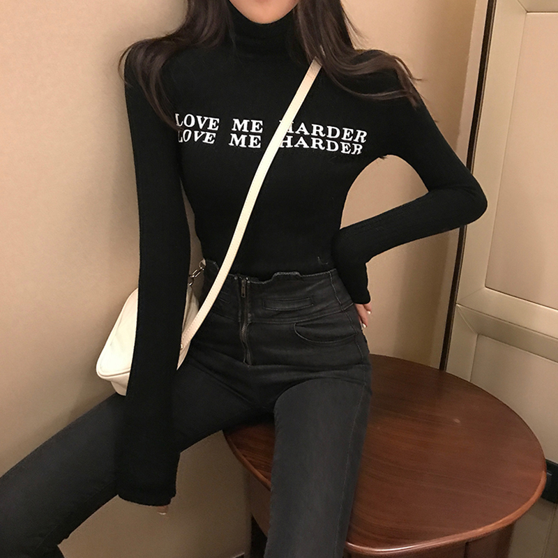 chic上衣女新款韓版秋冬百搭修身顯瘦高領復古長袖打底針織衫T恤
