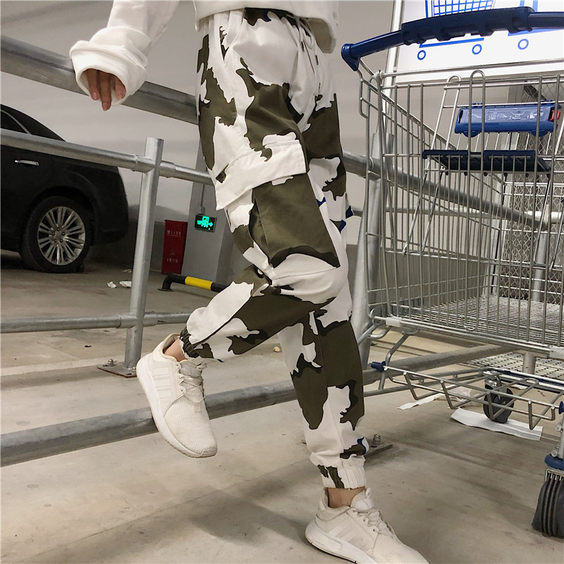 / 秋季女裝韓版日系迷彩寬松束腳褲高腰顯瘦哈倫褲運動休閑褲長褲潮