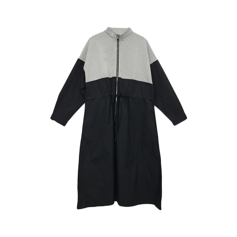 韓版時尚運動風秋裝女2018新款立領拉鏈收腰中長款拼接衛衣連衣裙
