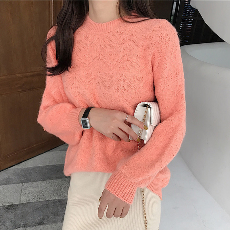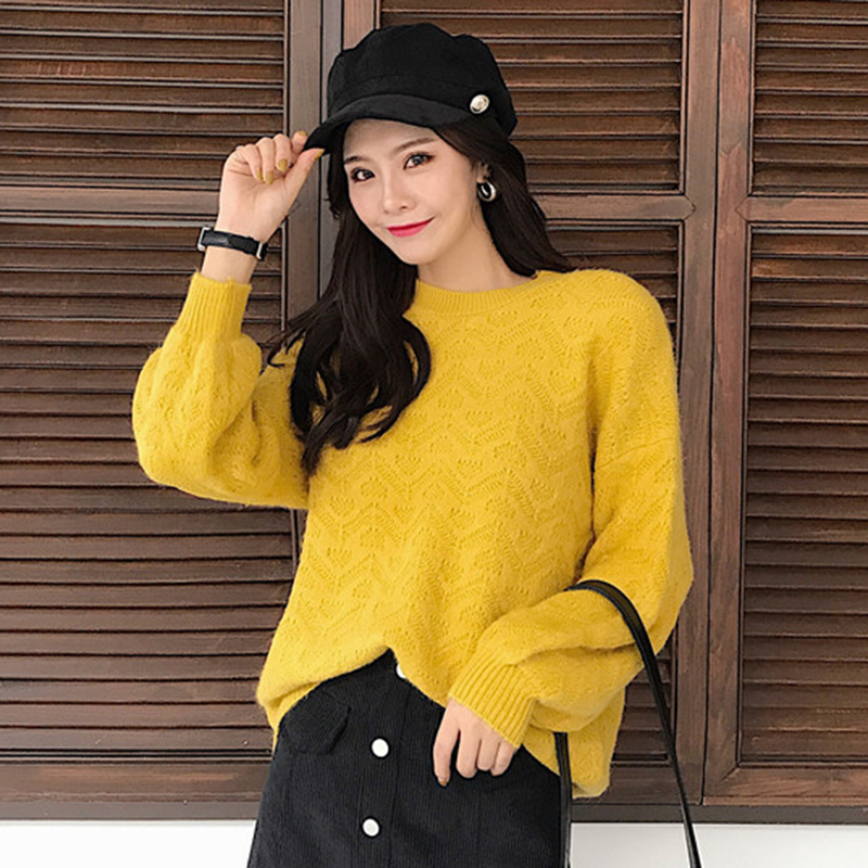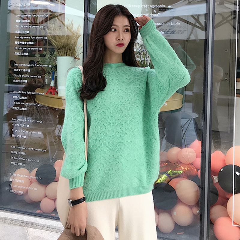 糖果色寬松毛衣女秋冬裝2018新款慵懶風針織外套學生圓領長袖上衣