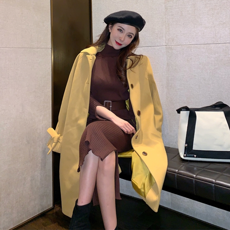 / 秋冬季中長款風衣新款chic港味復古百搭修身單排扣長袖開衫外套女