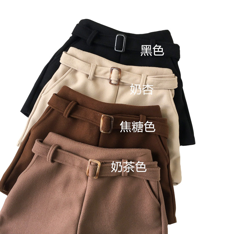 秋冬韓版寬松加厚毛呢短褲學生褲子高腰顯瘦直筒褲闊腿褲休閑褲女