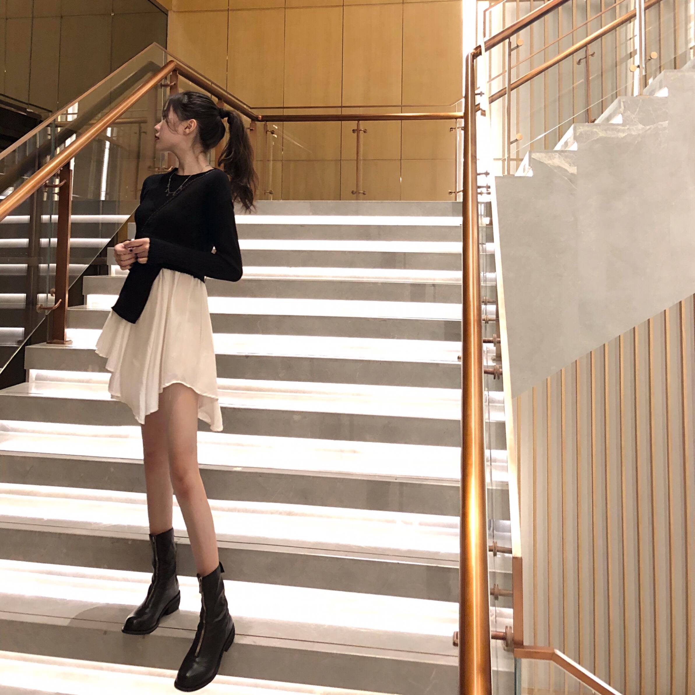 / 時尚設計感新款秋冬百搭氣質小眾連衣裙收腰復古法式少女茶歇裙潮