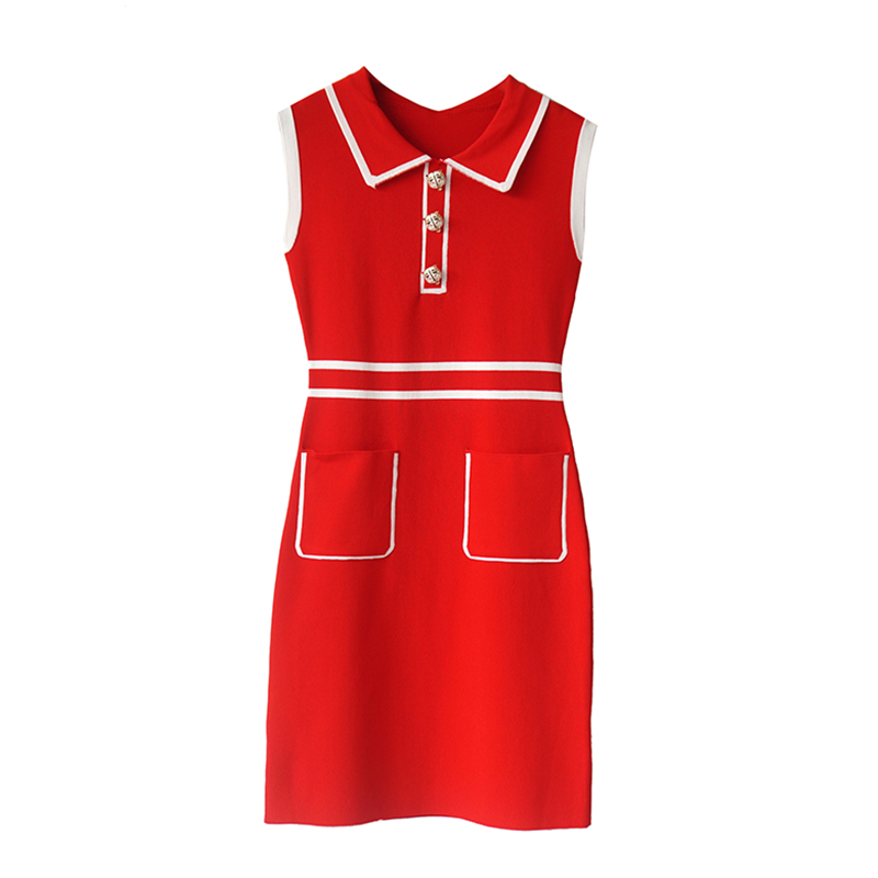 S秀2018夏季新款女裝名媛氣質收腰chic港味中長款針織顯瘦連衣裙