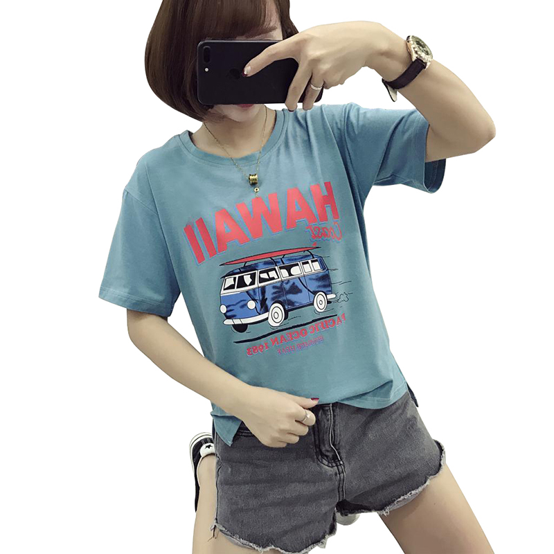 學院風春夏款卡通印花短袖T恤女寬松夏季顯瘦上衣潮百搭大碼體恤