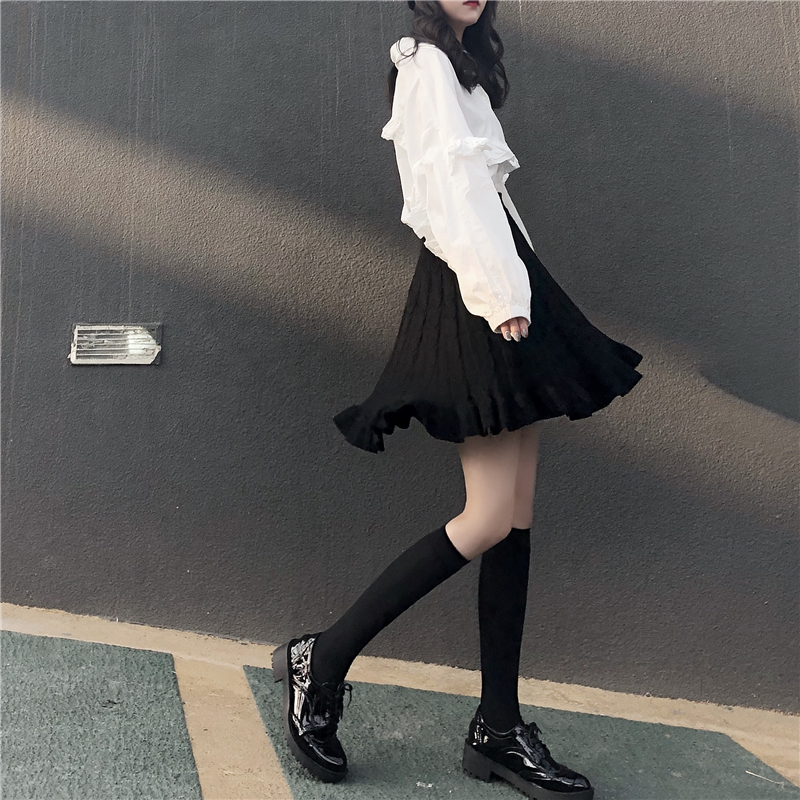 / 女神套裝秋裝網紅氣質慵懶長袖寬松白襯衫+針織半身裙高腰百褶裙