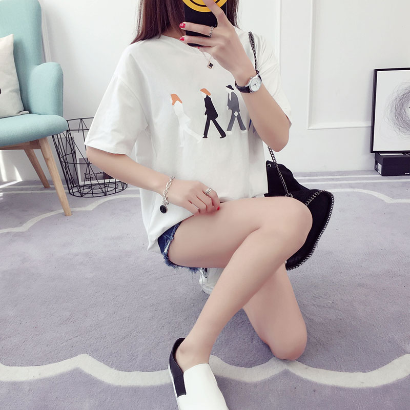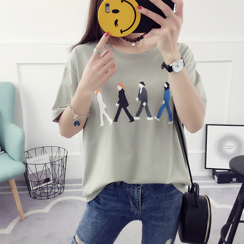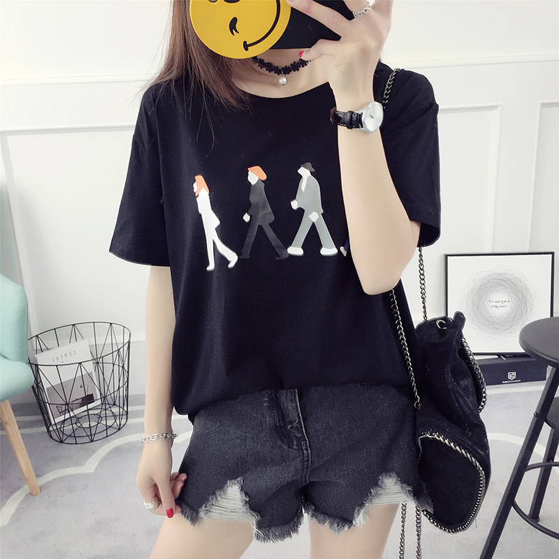/ 春裝新款韓版潮寬松學生百搭短袖T恤女裝上衣打底衫春季印花