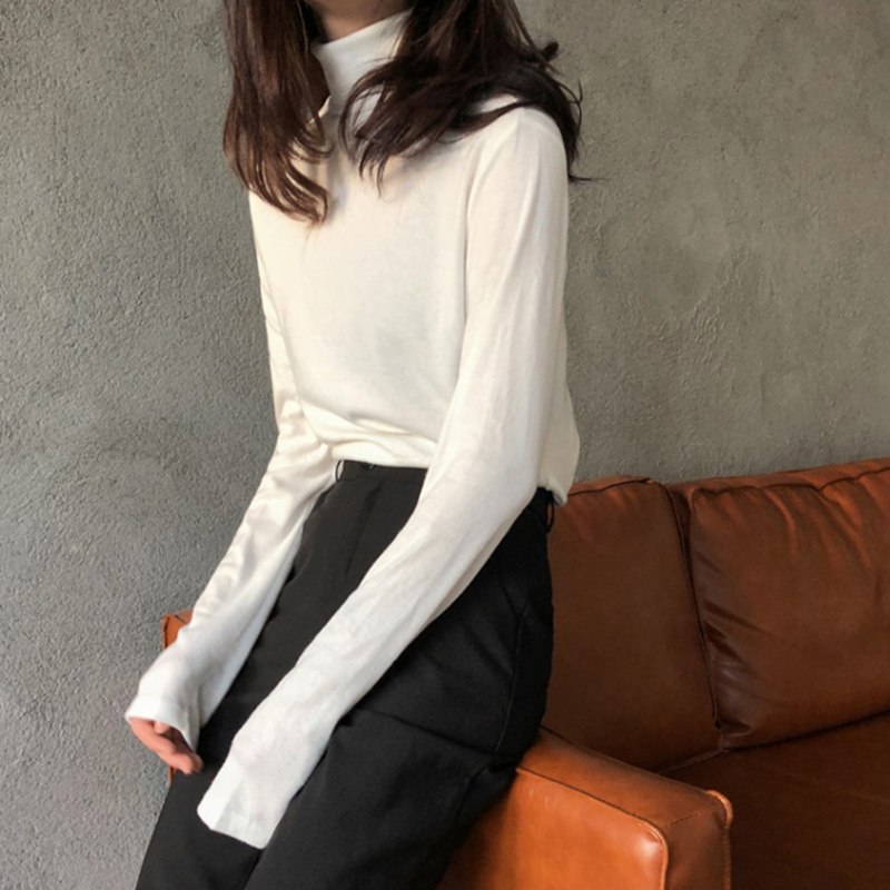 / 韓版高領條紋T恤女2018秋冬裝新款chic風學生百搭顯瘦彈力打底衫