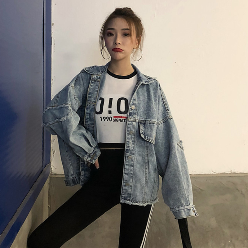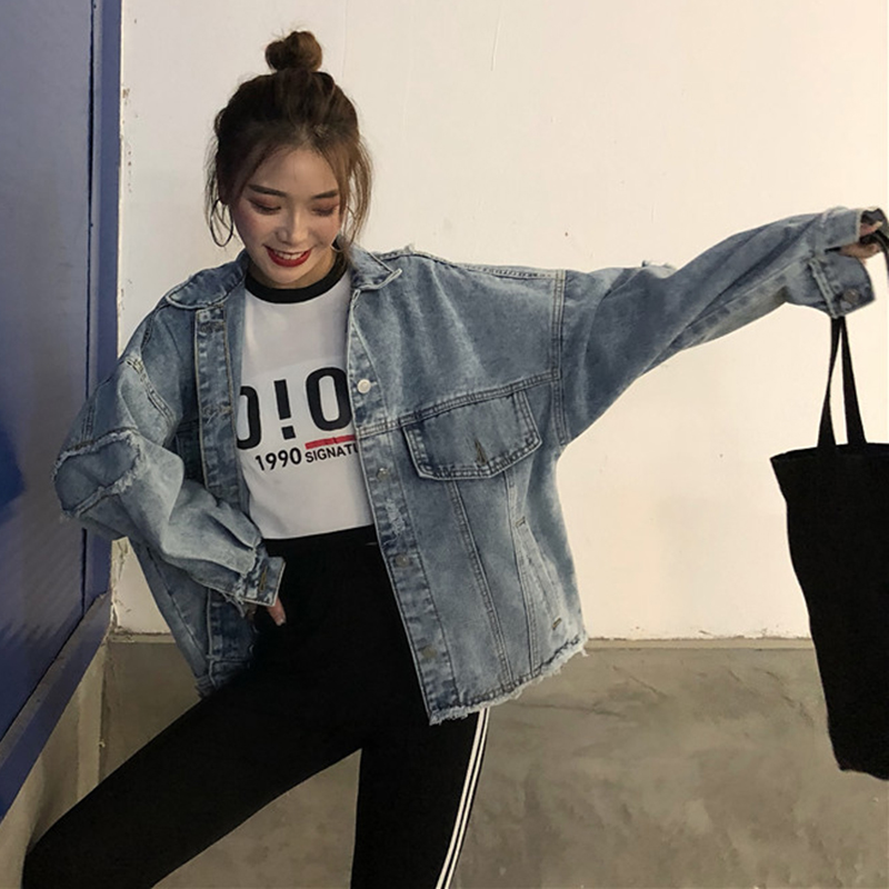秋裝女2018新款時尚個性破洞毛邊不規則牛仔外套韓版學生潮流上衣
