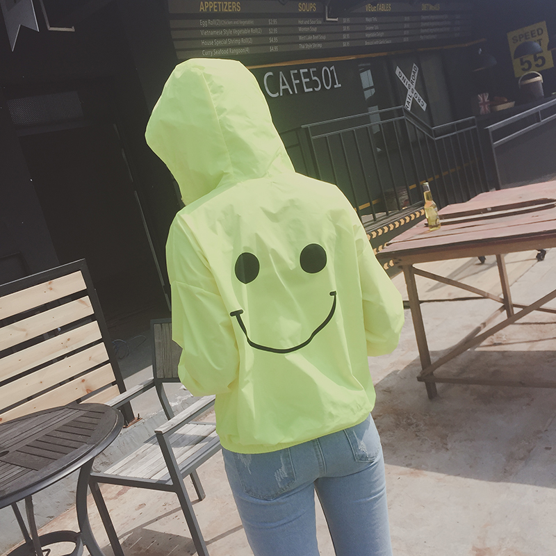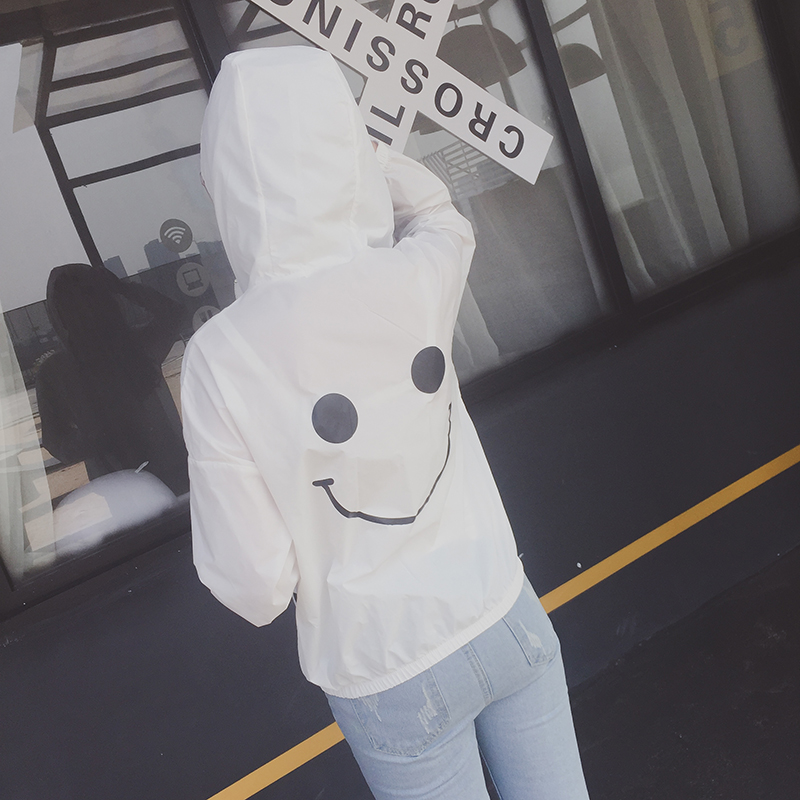 / 2017春夏新款 韓版糖果百搭女防曬衫連帽笑臉印花防曬外套女上衣