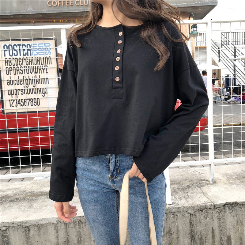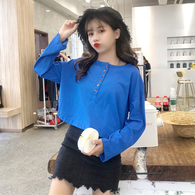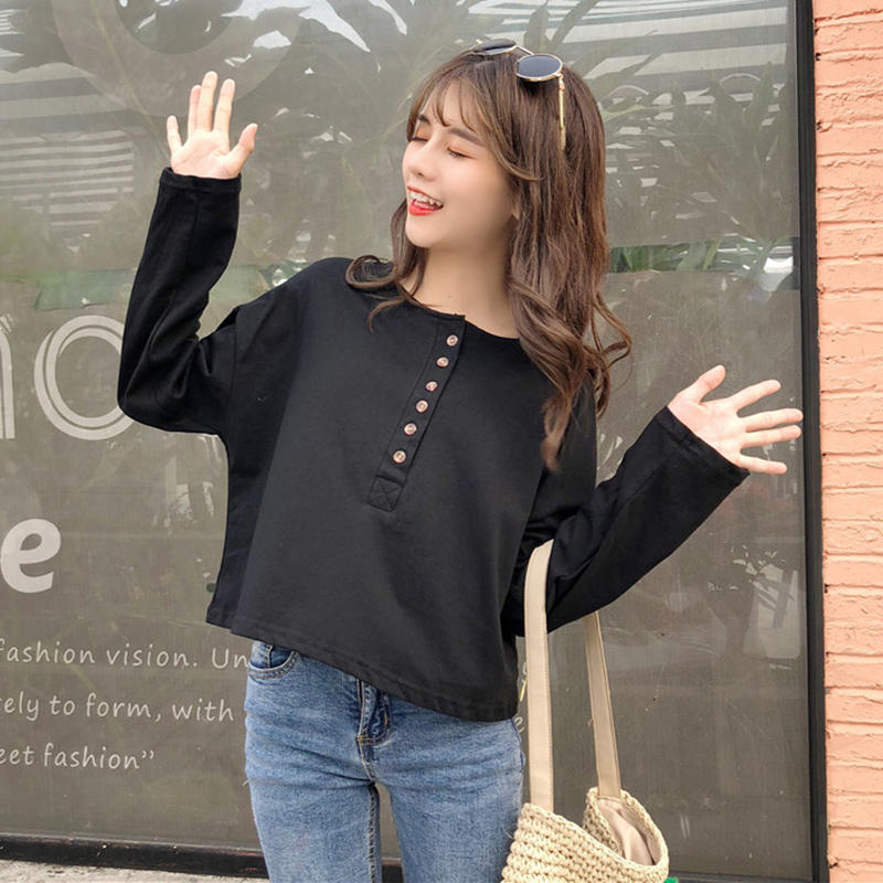 / 休閑純色學生上衣秋裝女2018新款韓版百搭圓領長袖短款T恤打底衫